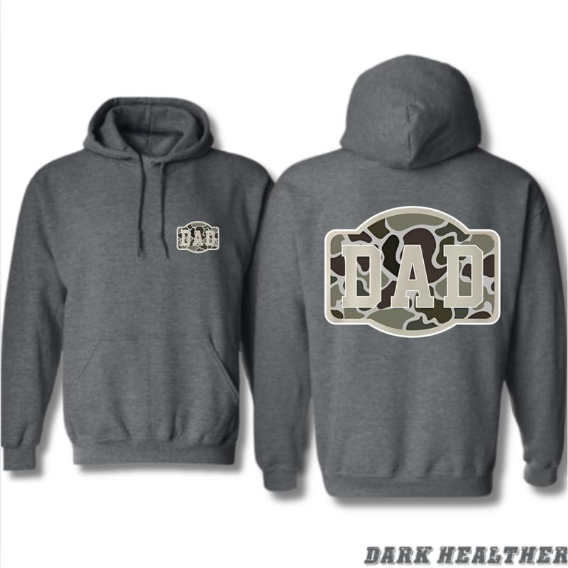 Camo Dad 2-Sided Hoodie, Funny Camouflage Graphic Pullover, Cool Streetwear Top, Casual Gift for Fathers, Trendy Graphic Apparel for Men