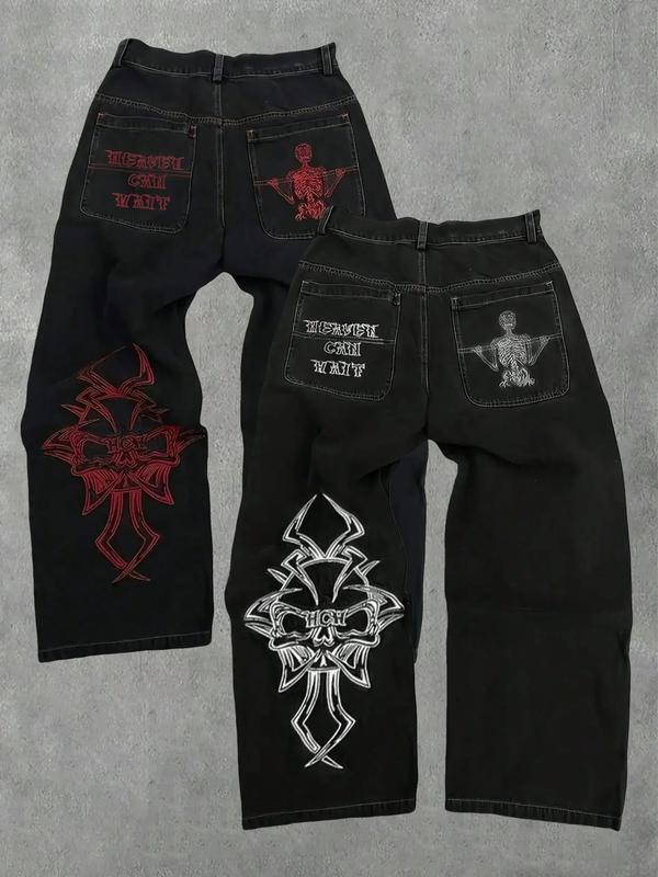 Y2K American New Pattern Embroidery Baggy Jeans Men High Street Vintage Hip Hop Fashion Casual Joker Couple Wide-leg Pants
