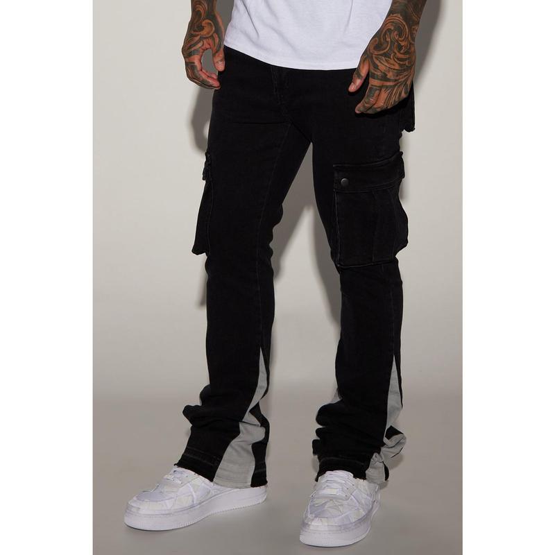 Carried Cargo Stacked Skinny Flared Jeans - Black