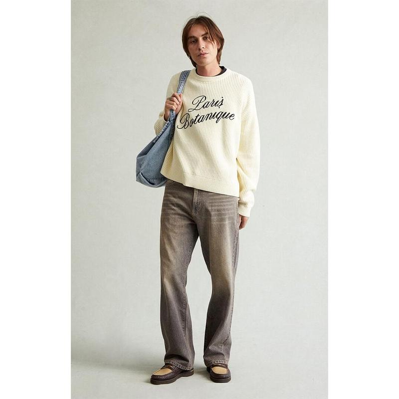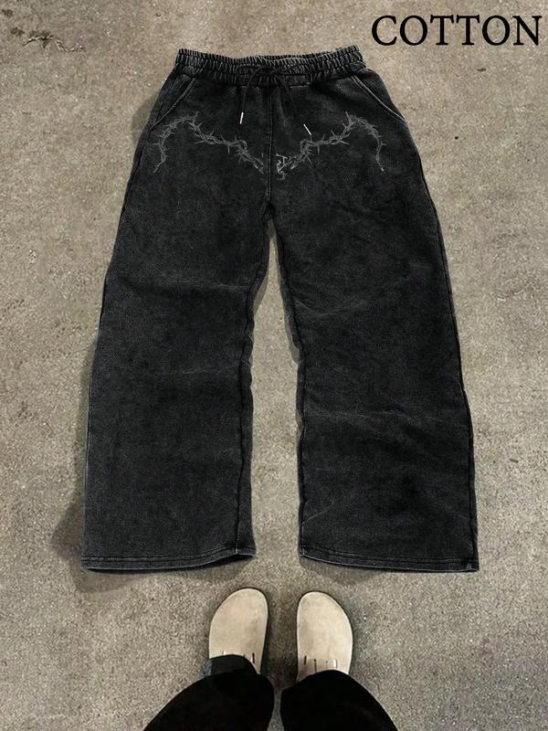 Comfortable Cotton Fabric, Thorn Print Casual Pants, New Autumn Winter Straight Leg Men's Pants, Sports Wide-Leg Sweatpants