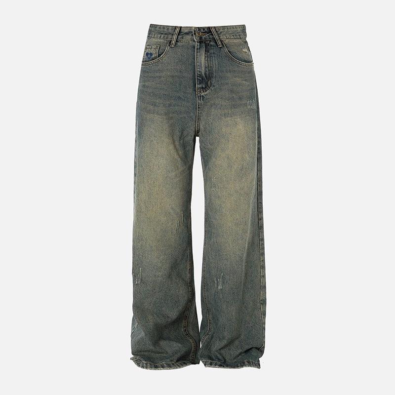 Men's Retro Ripped Embroidered Jeans Men's Straight Casual American High Street Long Pants Streetwear Stylish