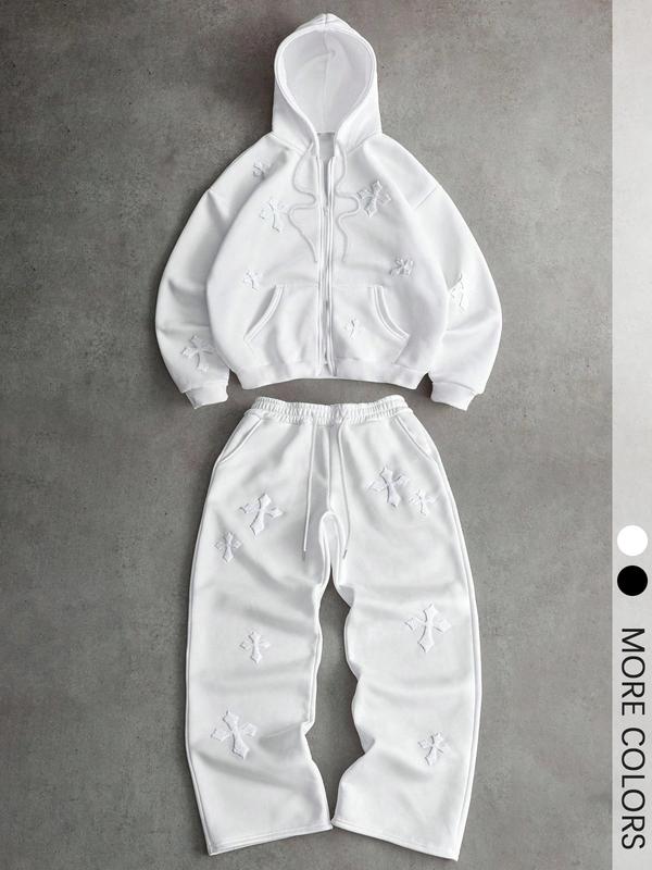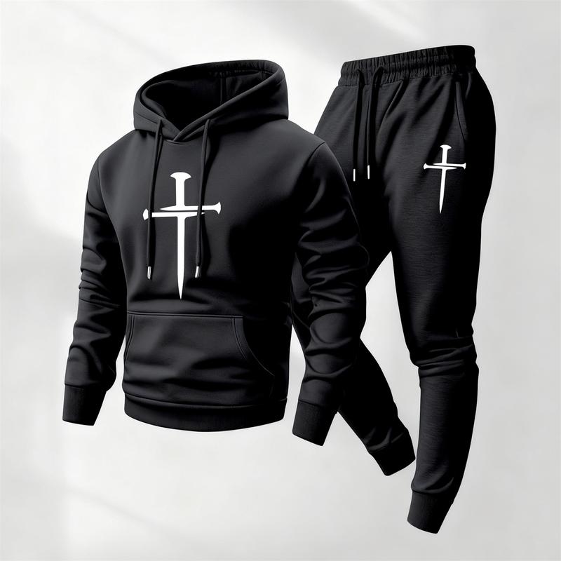 Men's Cross Print Hoodie & Pants Set, Regular Fit Casual Fashion Cozy Breathable Outfits for Daily Outdoor Wear, Men's Clothes for Fall & Winter