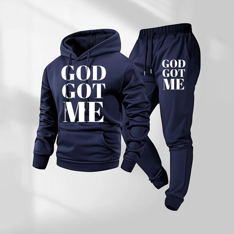Men's God Got Me Letter Printed Hoodie and Drawstring Sweatpants Set, Menswear, Casual Athletic Long Sleeve Hooded Jacket & Trousers for Fall & Winter, Men's Clothing for Daily Wear, Sportswear Indoor Outdoor, Tracksuit, Athleisure Summer Clothes