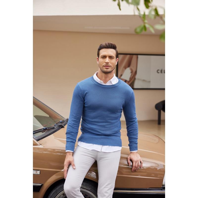 CCCMAI Men's Cotton Crew Neck Sweatshirt Long Sleeve Breathable Fashionable Casual Pullover Solid Color Knitwear Autumn Winter Comfort Menswear Tops Crewneck