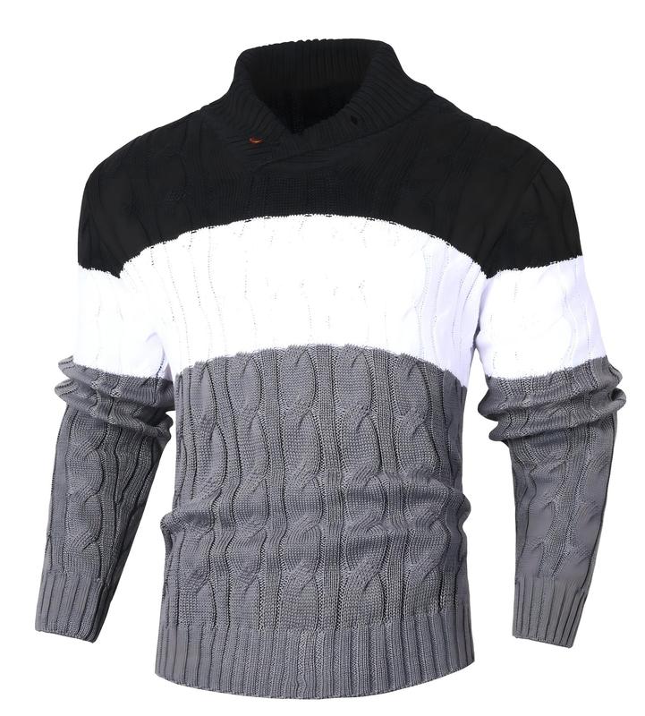 Men's Mock Neck Knitted Sweater Fashion Patchwork Knitting Pullovers Men Autumn Winter Daily Casual Warm Pullover Sweaters Man Knitwear Menswear
