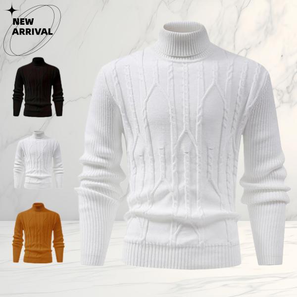 New Men's Turtleneck Cable Knit Sweater Vintage Cable Weave High Neck Design Thermal Insulation Loose Fit Layered Style Fall Winter Retro Knitwear Menswear Tops Long Sleeve cold weather comfort Casual White
