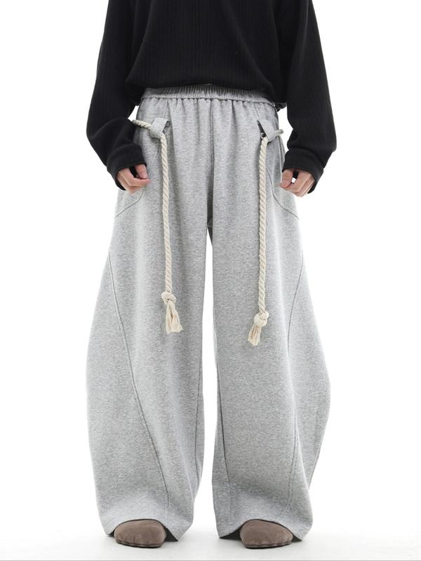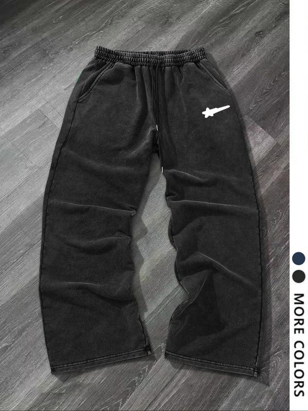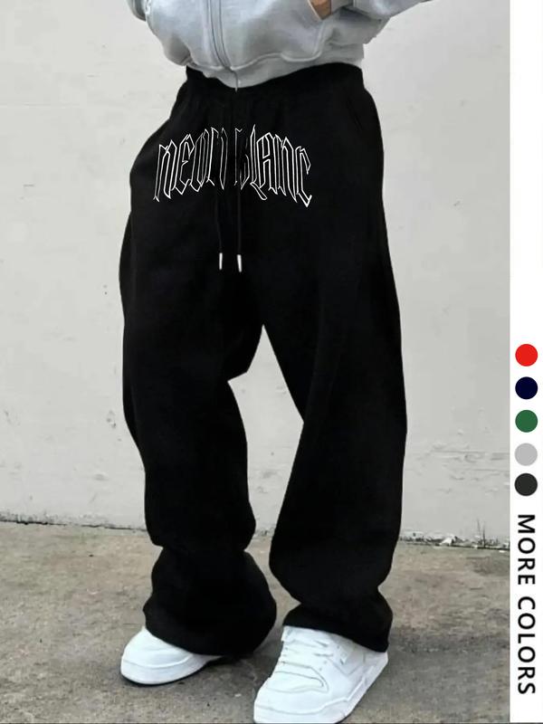 Men's Casual Loose-Fit Long Pants, Letter Print Drawstring Wide Leg Sweatpants, All-Season Comfortable Men's Clothing