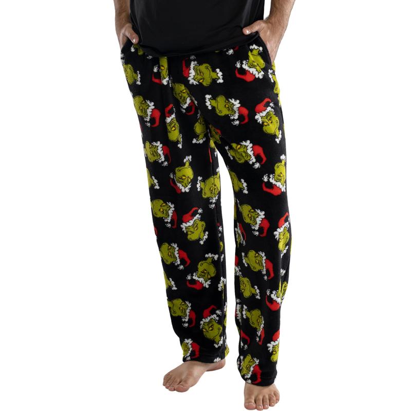 Dr. Seuss Men's GRINCH Sneaky Face Fleece Plush Pajama Pants