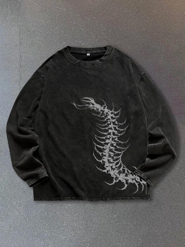 Men's Washed Vintage Round Neck Long Sleeve T-Shirt, Casual Fashion Tee for Daily Wear, Comfortable Cotton Material, Perfect for Spring & Fall