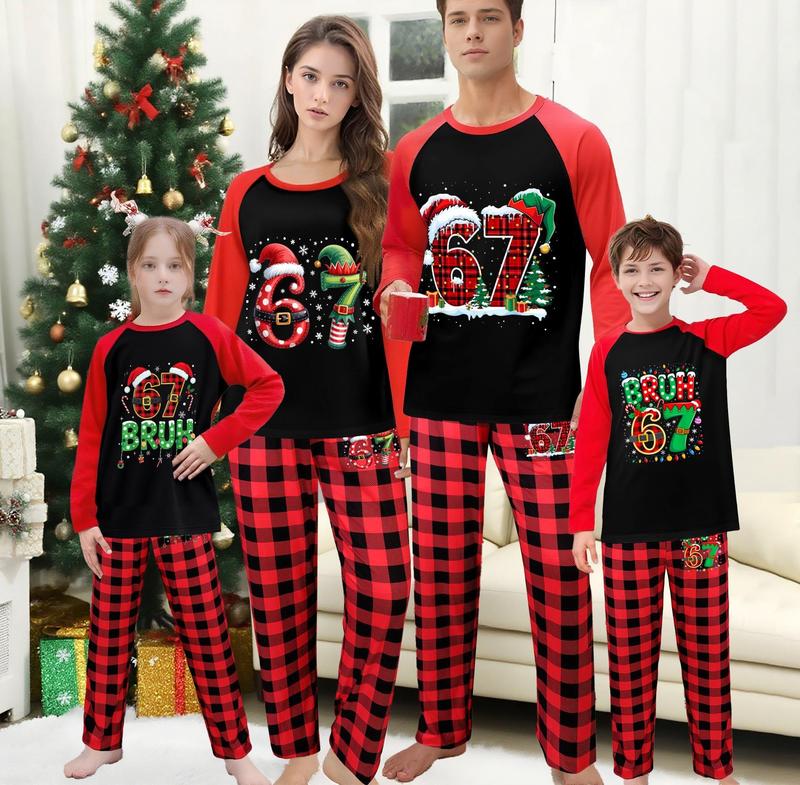 Six Seven Christmas Pajamas Set, 67 Pajama Set, 67 Trendy Viral Sleepwear, Matching outfits for parents and children Loungewear Gift, 67 Christmas Pjs Clothing Family Christmas Pajama Set
