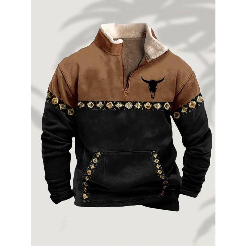 Men's Beige Long Sleeve Golf Shirt with Geometric Bull Head Print - Casual Weekend Style, Regular Fit, Knit Polyester Fabric, Machine Washable - Ideal for Spring/Autumn, Spring Casual Shirt | Bull Head Design | Machine Washable Top Cotton Fashion