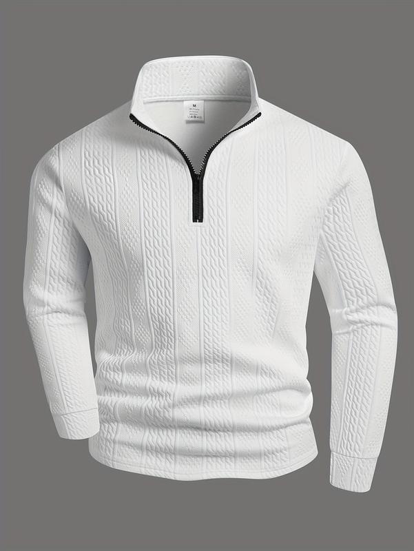Texture new fabric jacquard pattern men's long sleeved polo shirt thick top zipper stand collar daily casual wear business casual wear