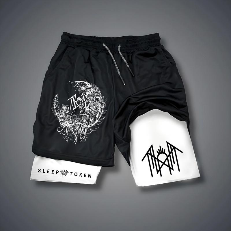 Sleep Token Merch Summer Men's Shorts - Oversized Graphic Polyester Shorts for Men, Breathable & Quick-Drying, Double-Layer Sports Shorts with Elastic Waistband
