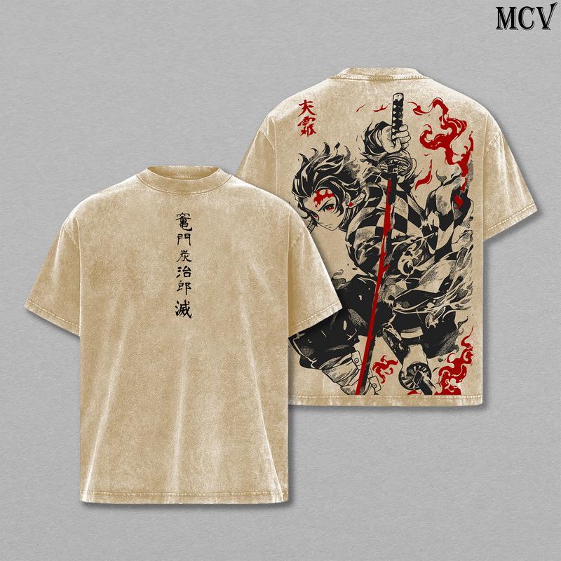 Tanjiro Kamado T-Shirt – Demon Slayer Kimetsu no Yaiba Vintage Washed Oversized Heavy Cotton Anime Manga Tee, Unisex Streetwear Retro Graphic Top Gift for Otaku Fans