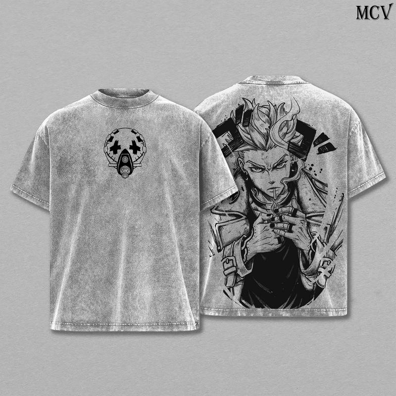 Enjin Gachiakuta Washed Tee – Heavy Cotton Oversized Vintage Graphic T-Shirt, Gritty Manga Antihero Streetwear, Cyberpunk Style Unisex Retro Top