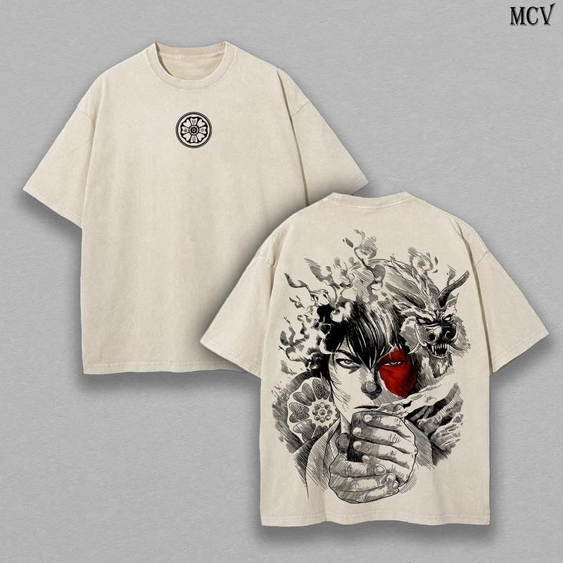 Ryomen Sukuna Signature - Jujutsu Kaisen Anime Double Oversized Washed Tee Unisex Oversize Anime Anime Lover Cotton Fabric Casual Tshirt Round Neck