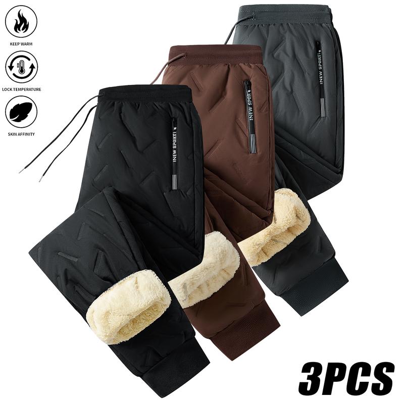 3-Pack Men's & Women's Thickened Winter Jogger Pants with Plush Fleece Lining Warm Leak-Proof Windproof Adjustable Drawstring Waist Zipper Pockets Solid Color for Casual Home and Outdoor Use