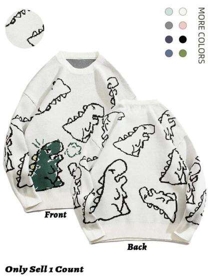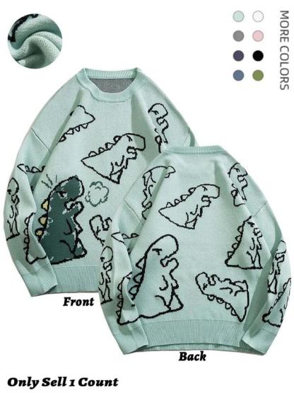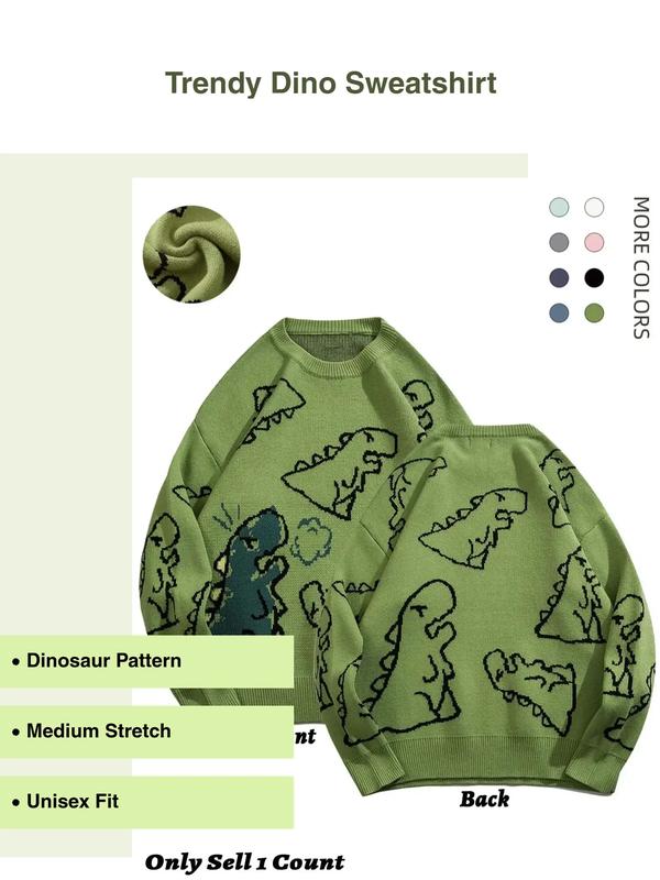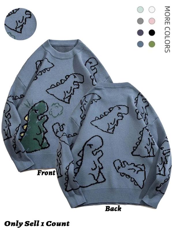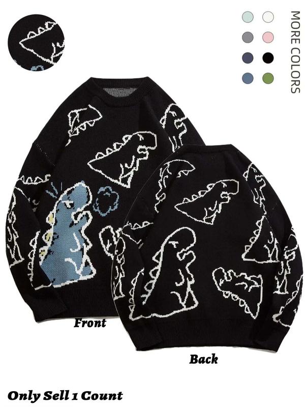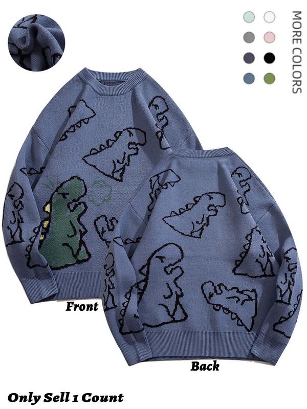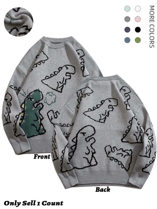 Men's New Trendy Round Neck Long Sleeve Dinosaur Sweater, 1 Count Lounge Loose Crew Neck Jumper for Fall & Winter, Casual Men's Knit Clothing for Daily Wear