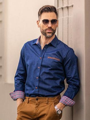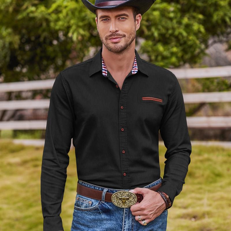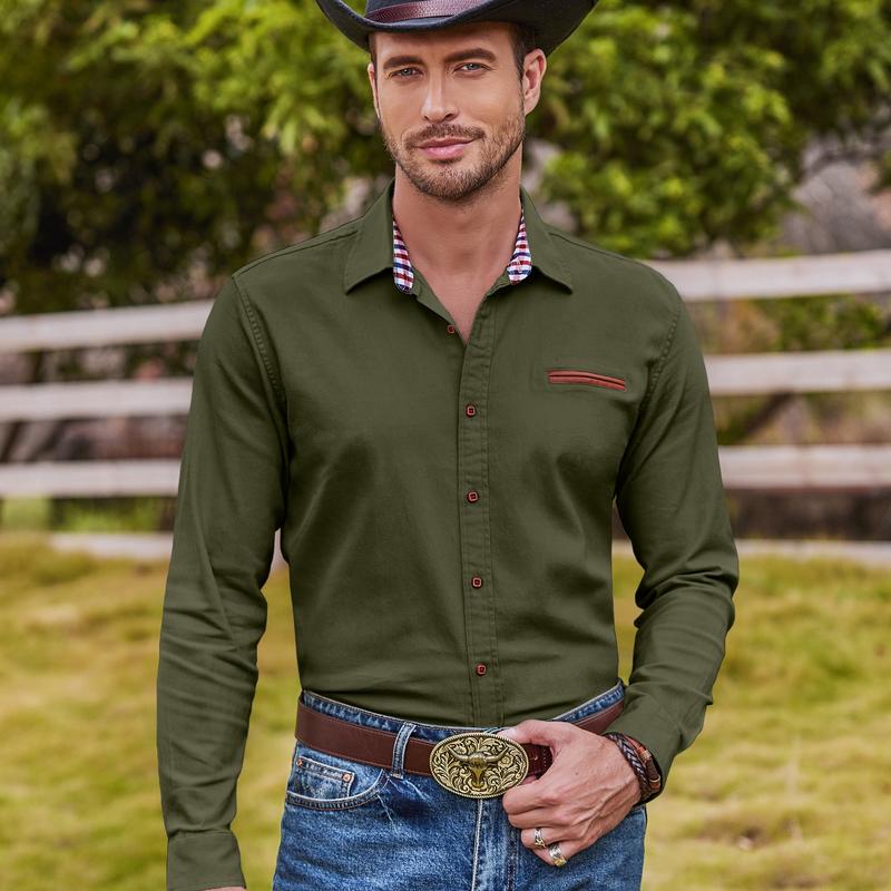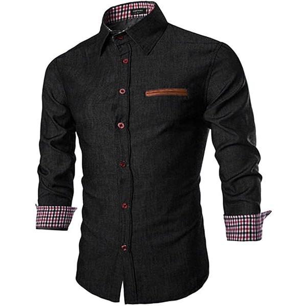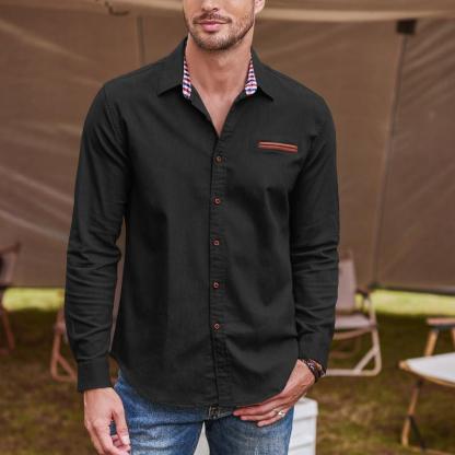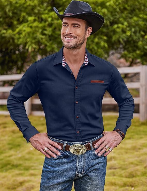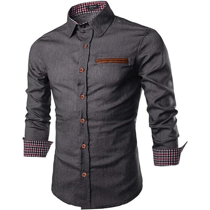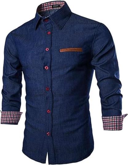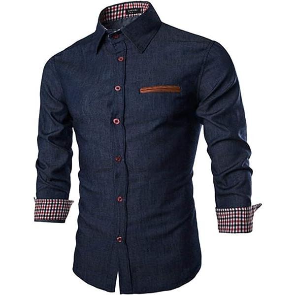 Men's Casual Shirt Button Down Shirts Long-Sleeve Denim Work Cotton Shirt Long Sleeve Collar Fashion Menswear Soft Top Dress Pockets