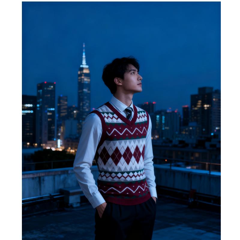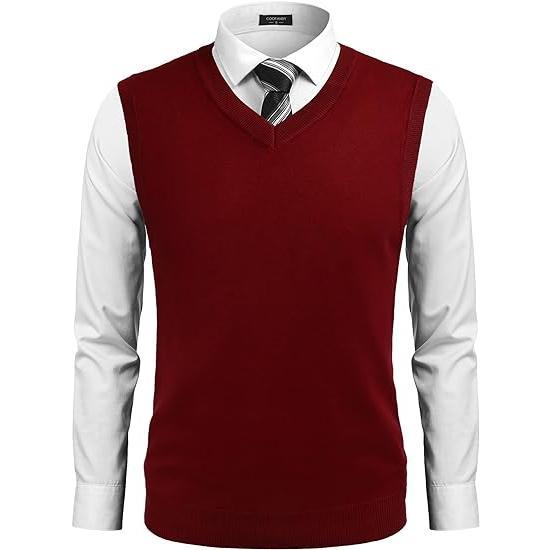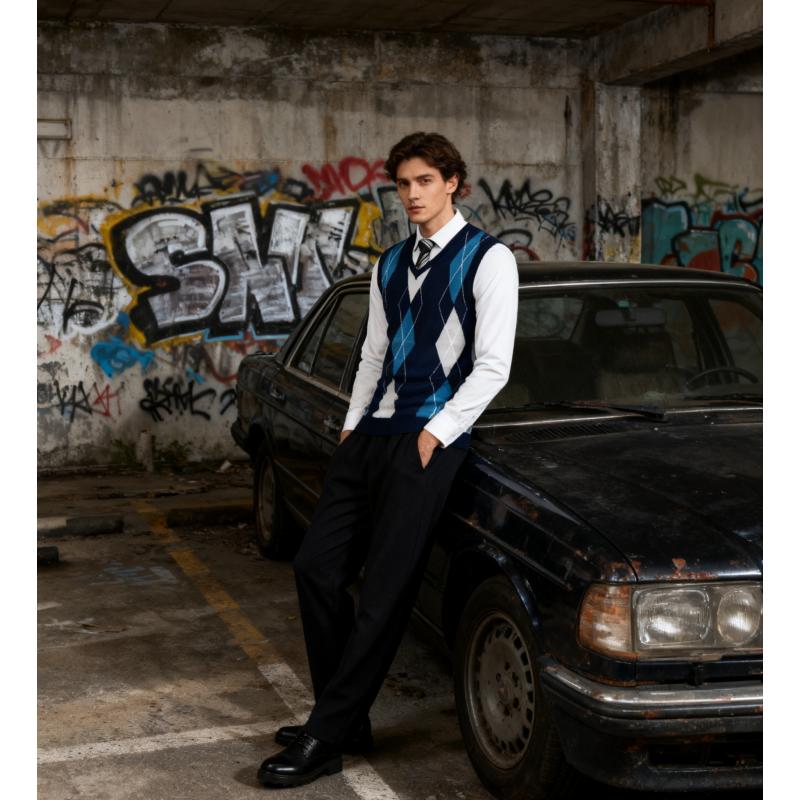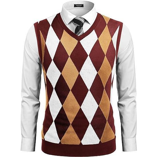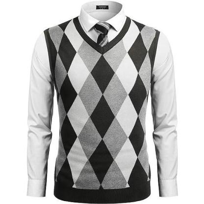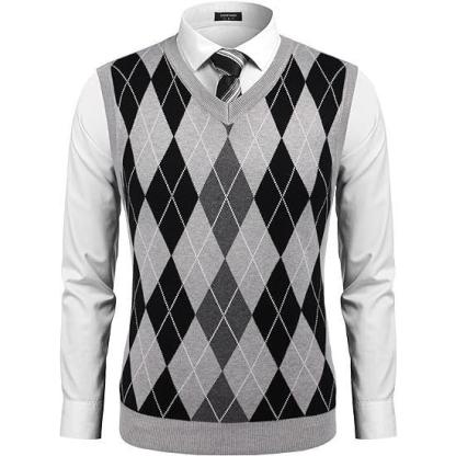Fall Outfits Men's V-Neck Sleeveless Argyle Sweater Vest Slim Fit Casual Knitted Pullover for Spring Autumn Winter Office Wear & Party Events