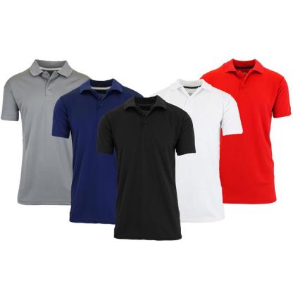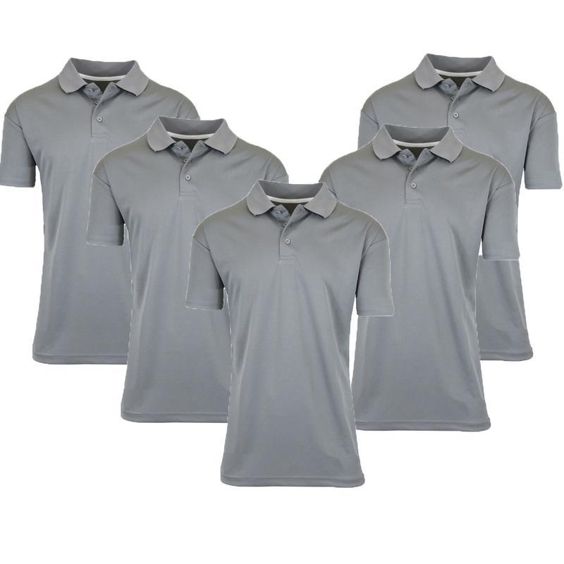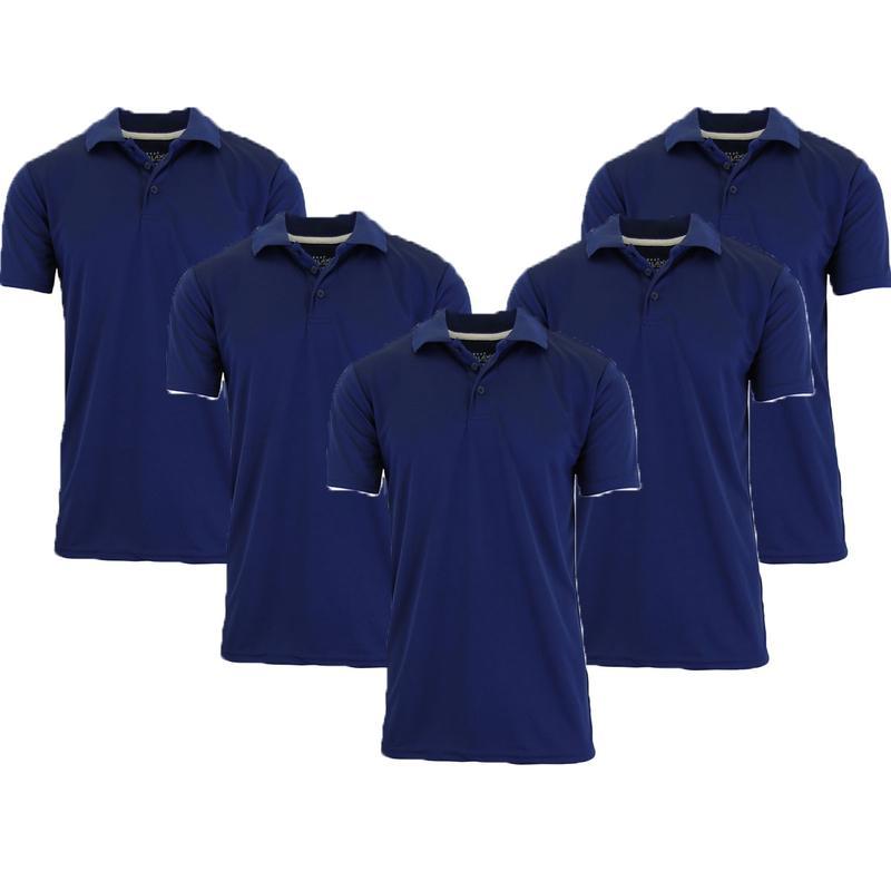 Stay comfortable and stylish all day long with our 5-pack men's dry fit moisture-wicking polo shirt.