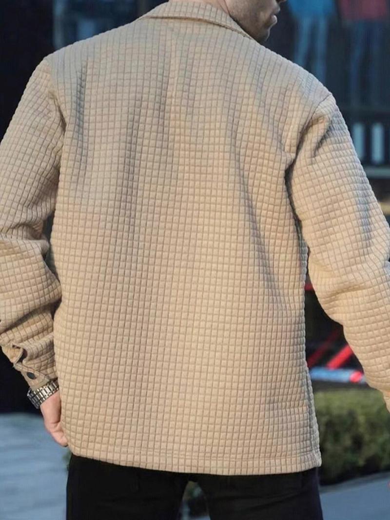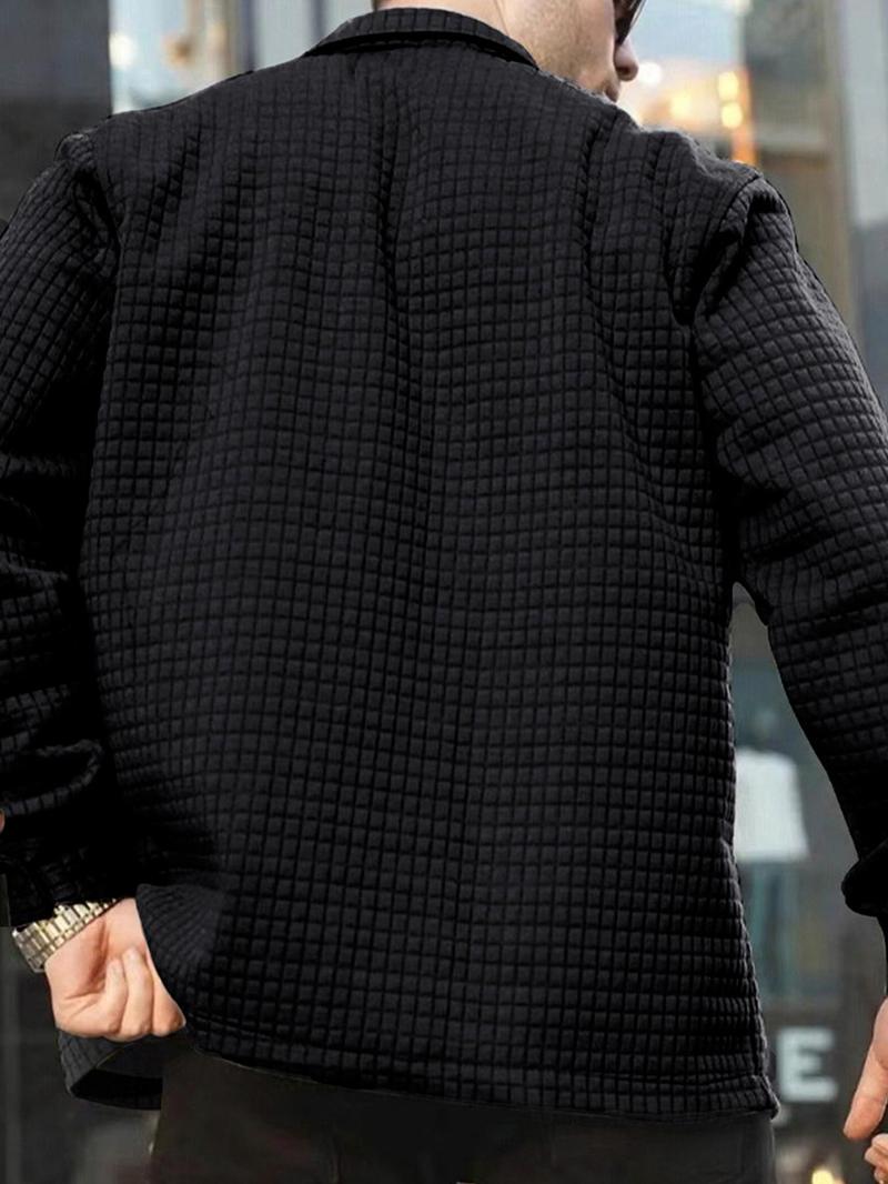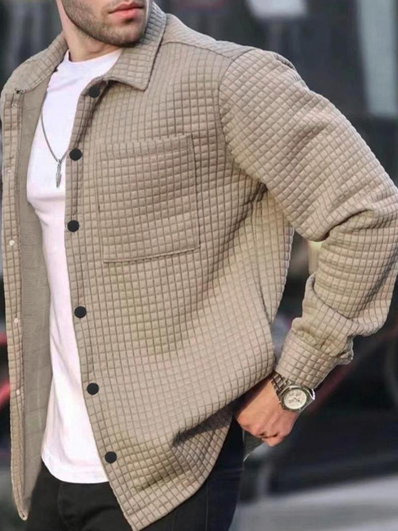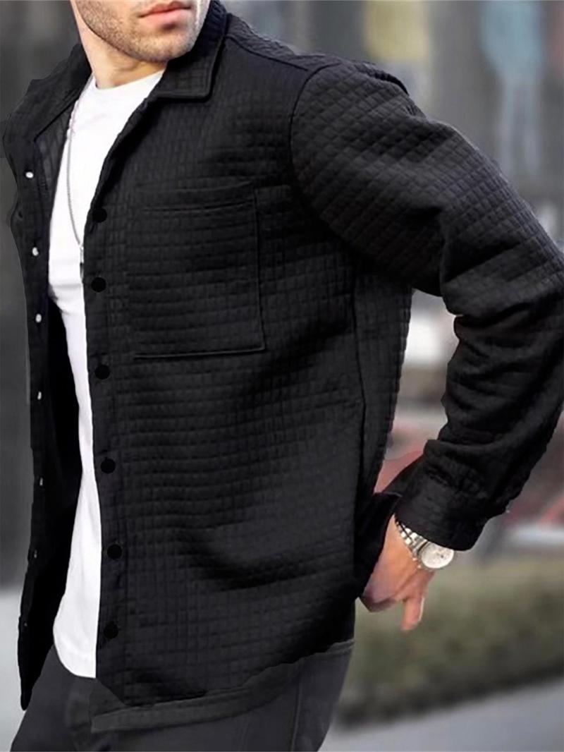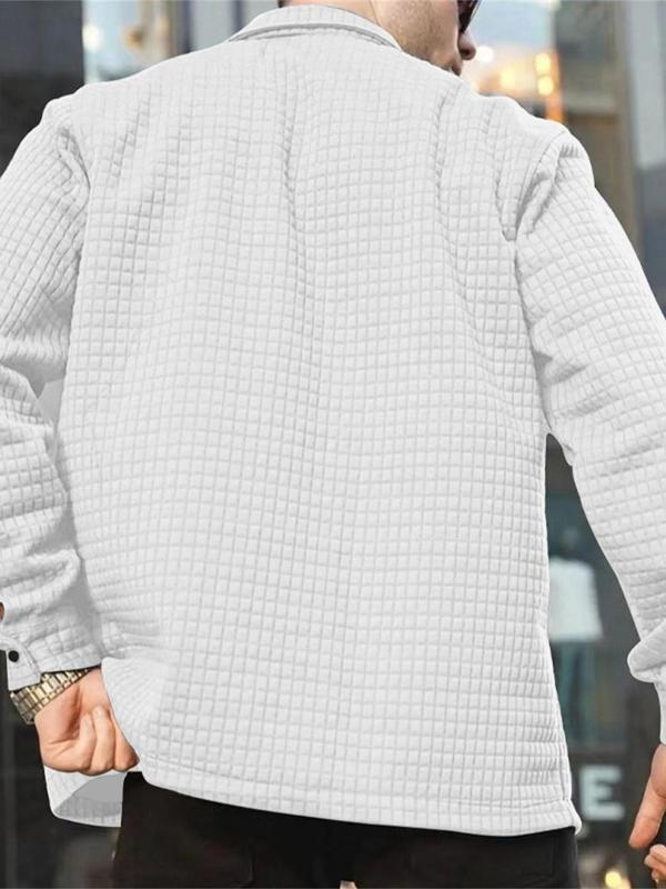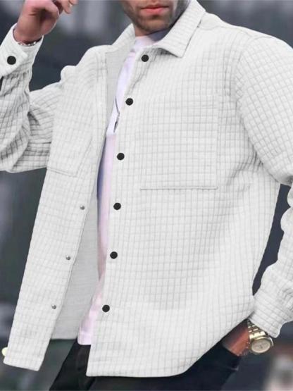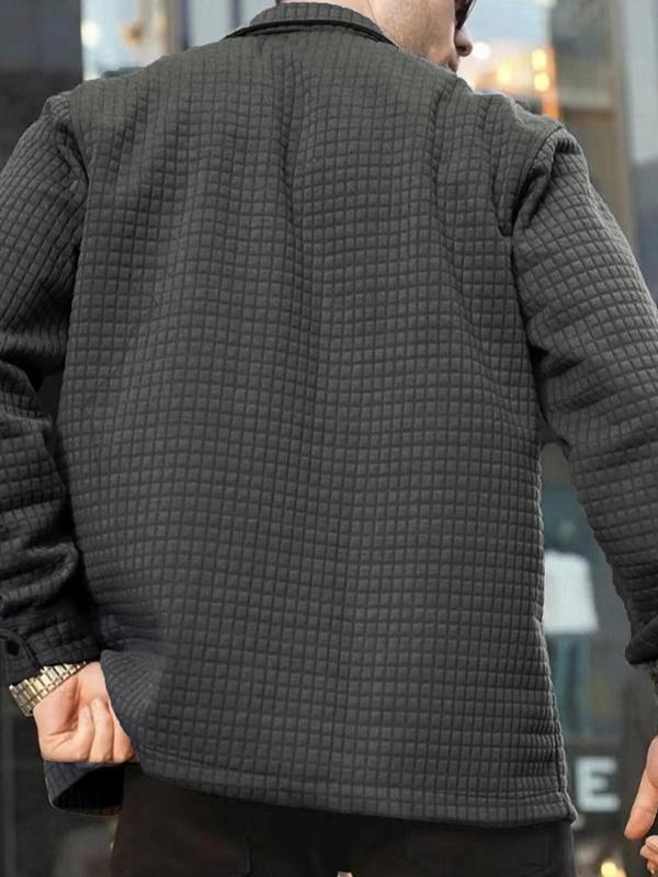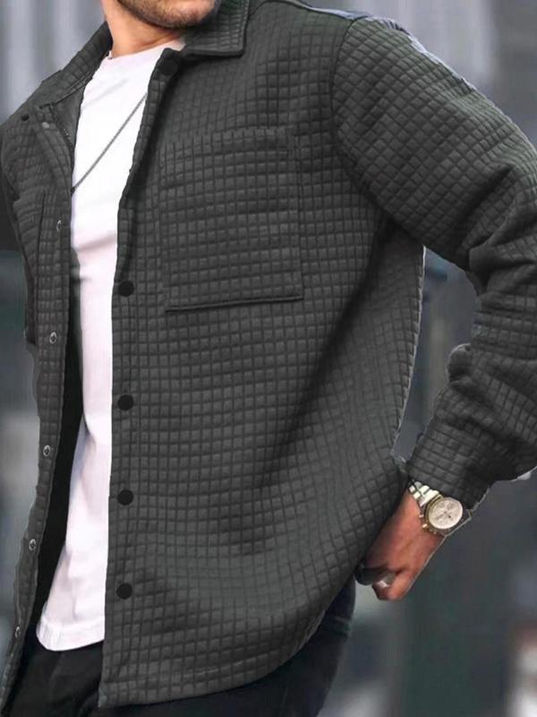 Men's Plain Waffle Knit Pocket Button Front Shirt, Regular Fit Fashion Casual Long Sleeve Collared Top for Fall, Streetwear, Shirts for Men, Men's Clothes for Daily Wear, Mens Clothing, Going Out Tops