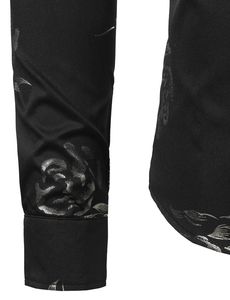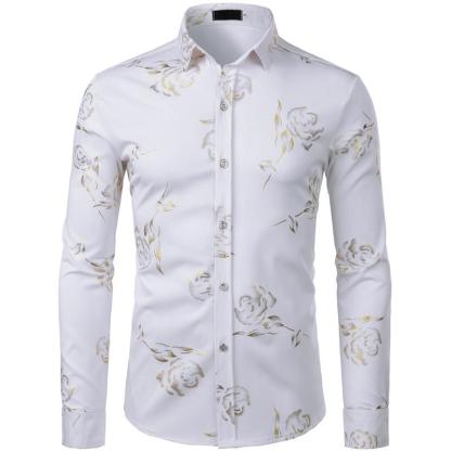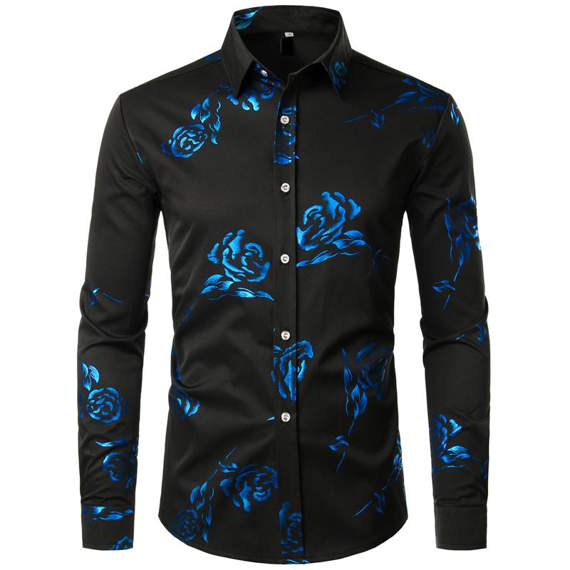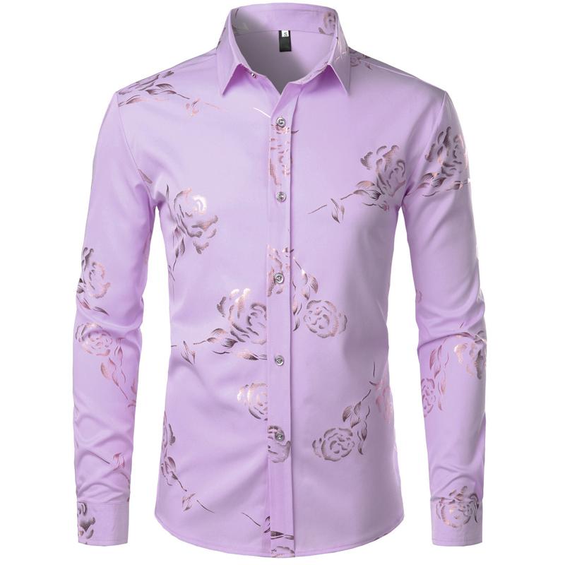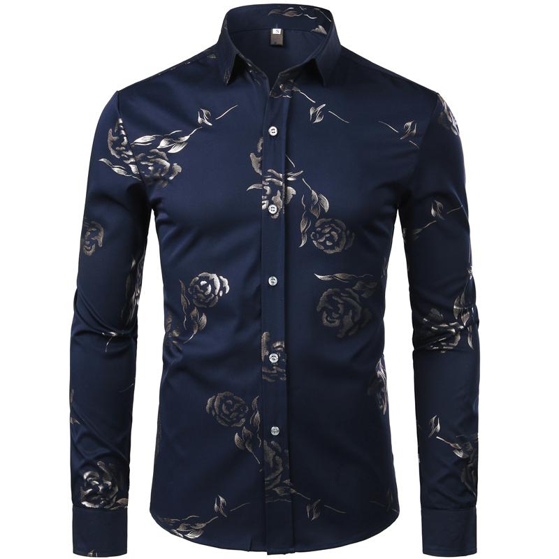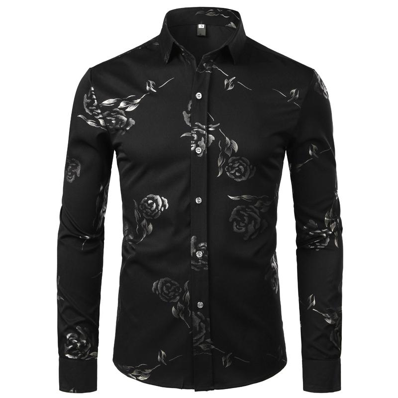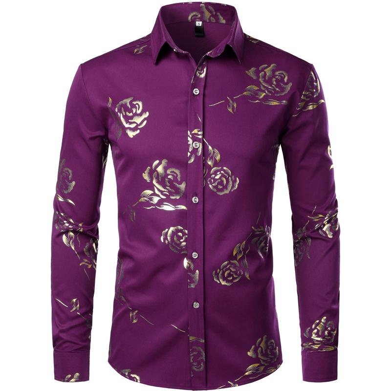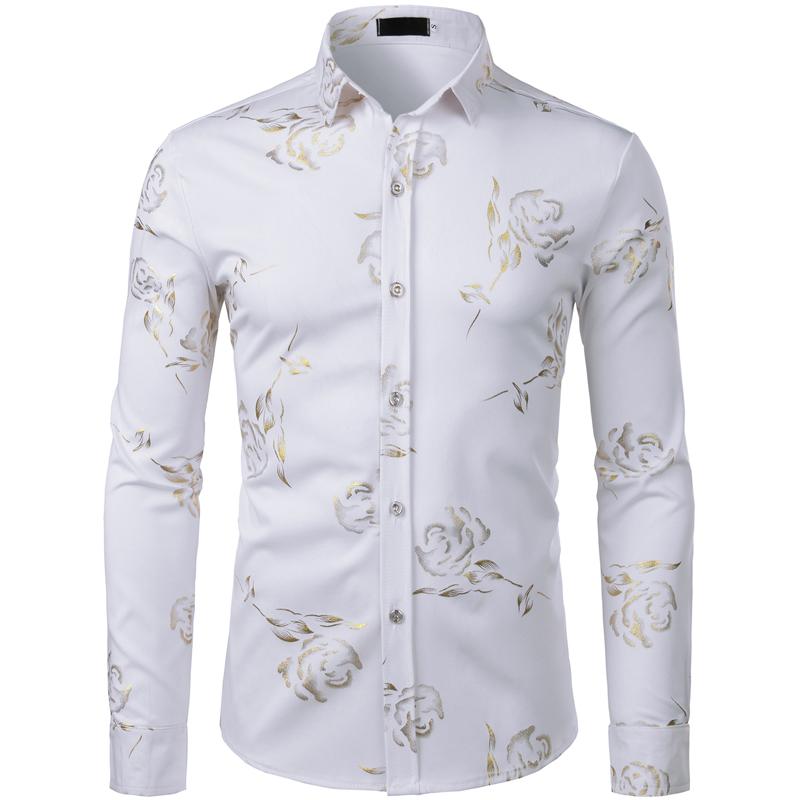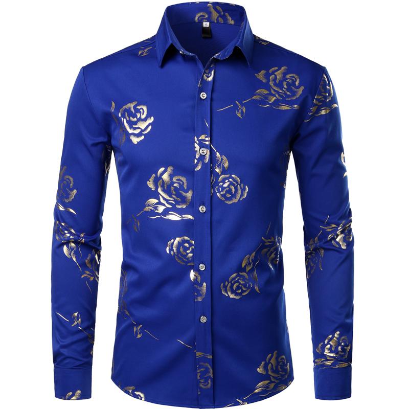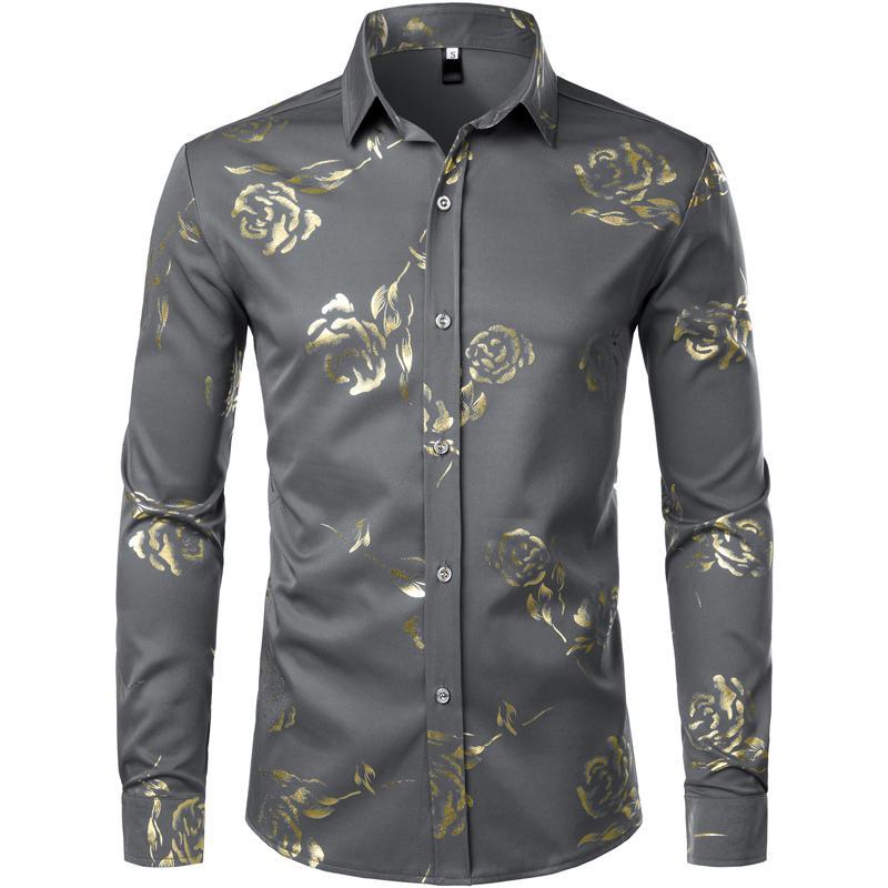 Mens Hipster Gold Rose Printed Slim Fit Long Sleeve Dress Shirts Prom Performing Shirts summer outfits men sublime shirt funny shirts