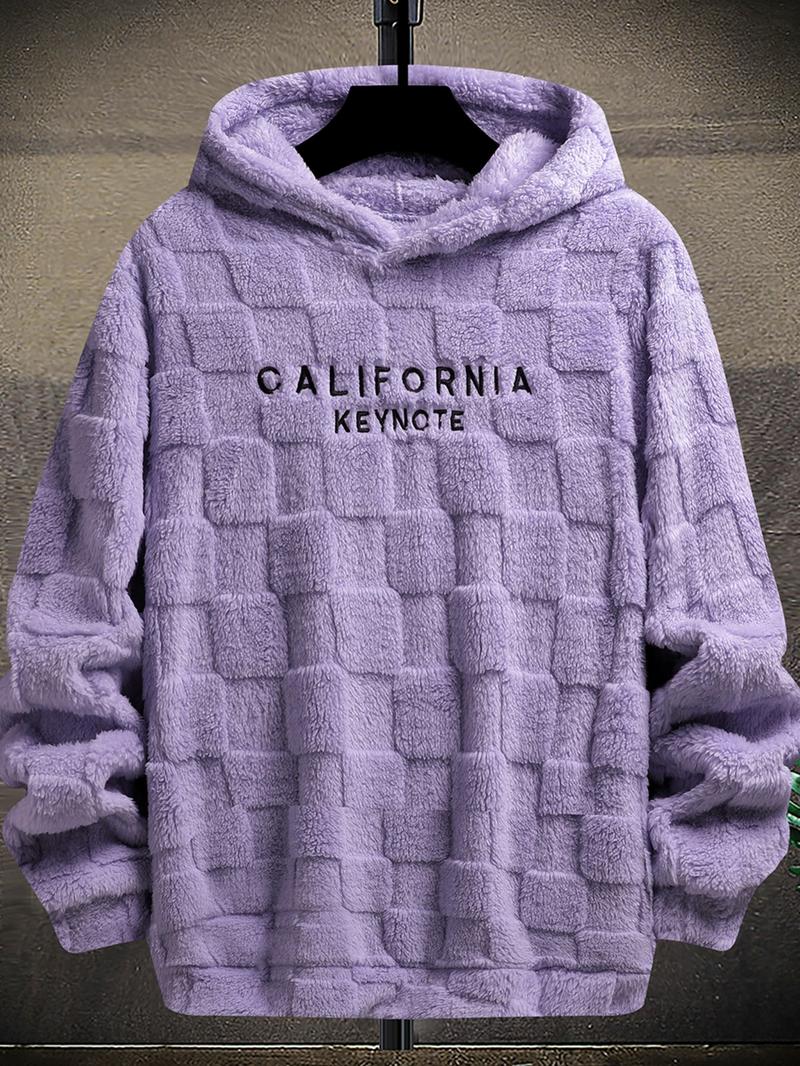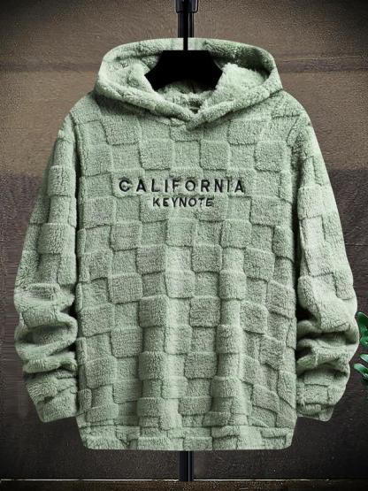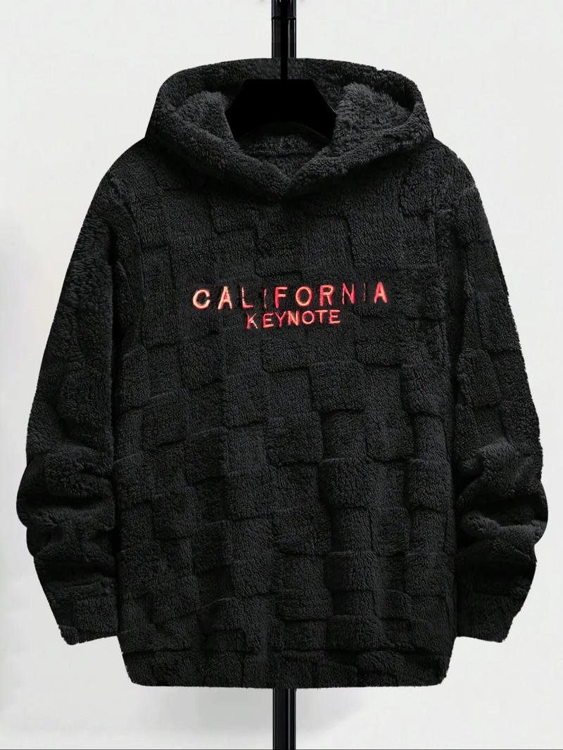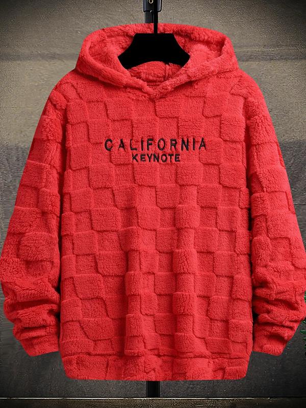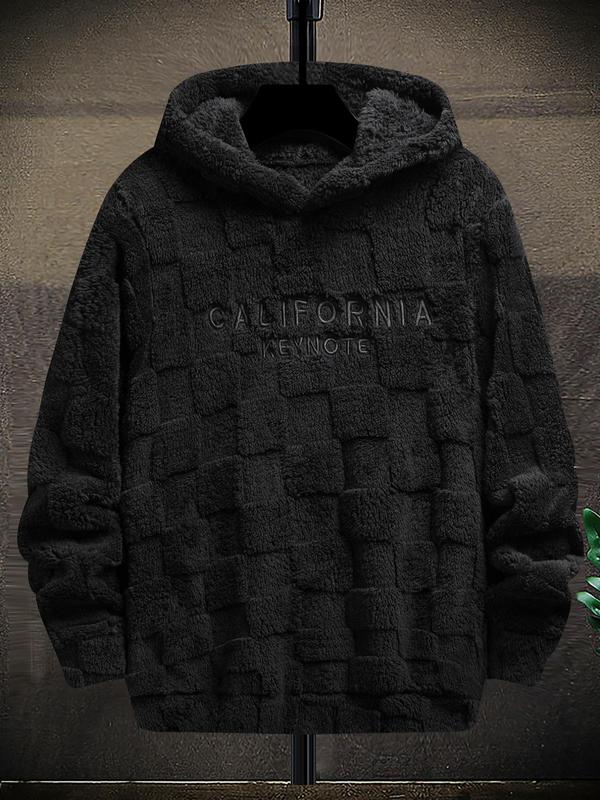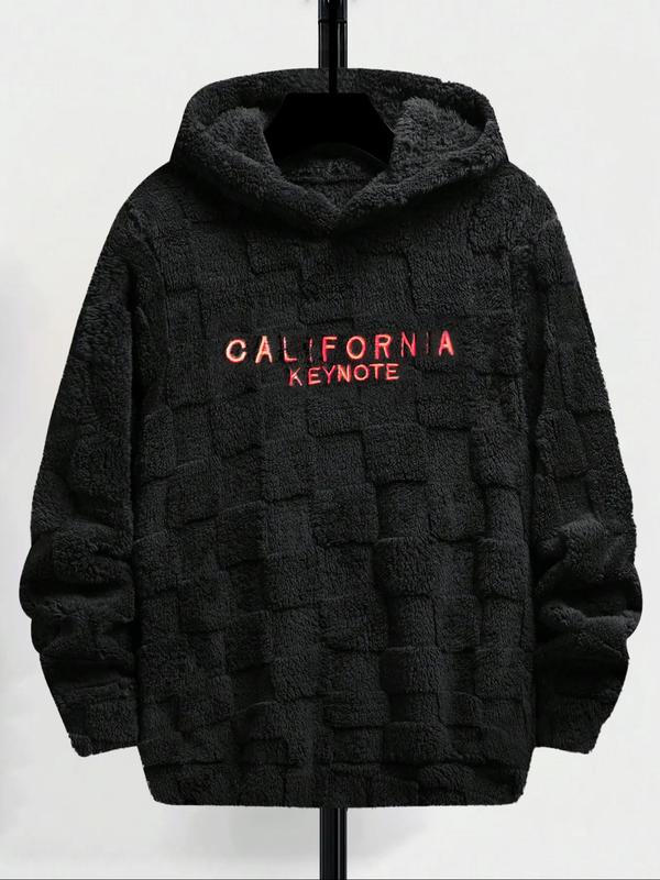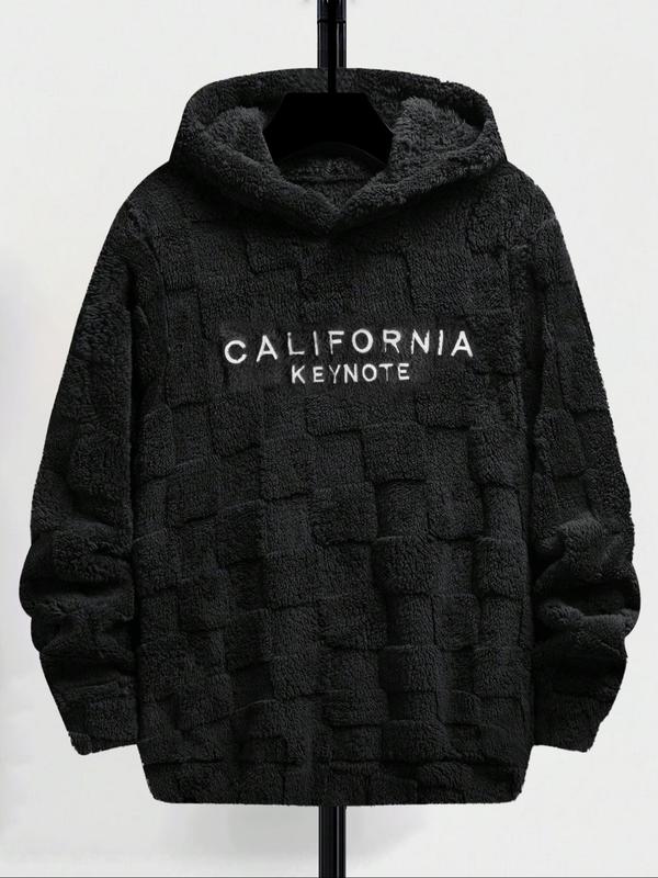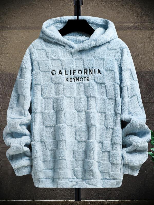 Men's Letter Embroidery Drop Shoulder Fuzzy Hoodie, Regular Fit Casual Fashion Fabric Long Sleeve Hooded Sweatshirt for Spring & Fall, Mens Clothing, Fashion Men's Longsleeves Clothes for Daily Wear, Streetwear, Trendy Clothes