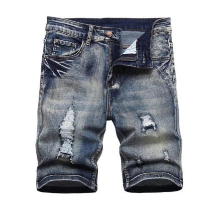 JUNBAOSS Men's Slim Fit Stretch Denim Shorts Ripped Skinny Jean Shorts for Men, Distressed Fashion Straight Comfort Flex Waist Short Denim Jean, Menswear Classic Street Style Cotton Fabric Jean Natural Hipster Personalized Stylish Jeans with Pockets