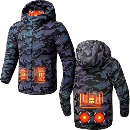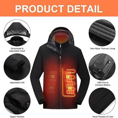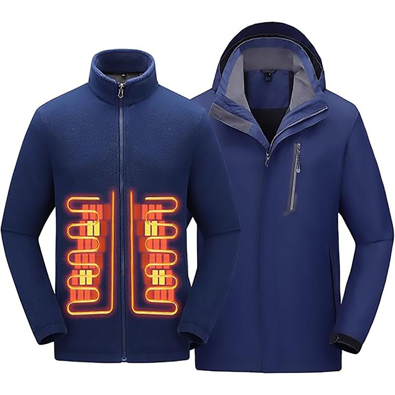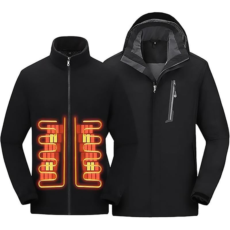 [Power Bank or Battery Pack Not included] Unisex 3-in-1 Puffer Coat Waterproof Heated Jacket with Massage Removable Warm Iiner Fleece Jackets