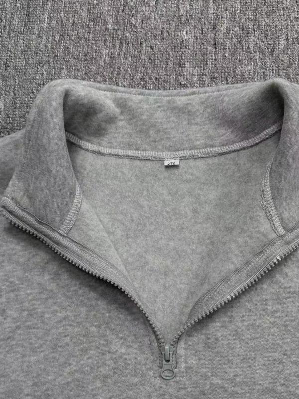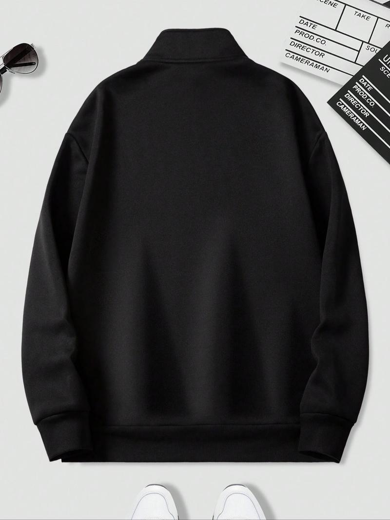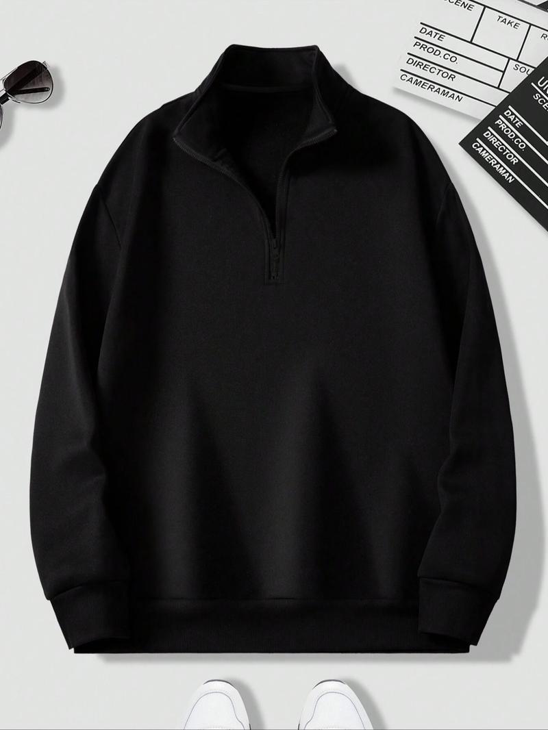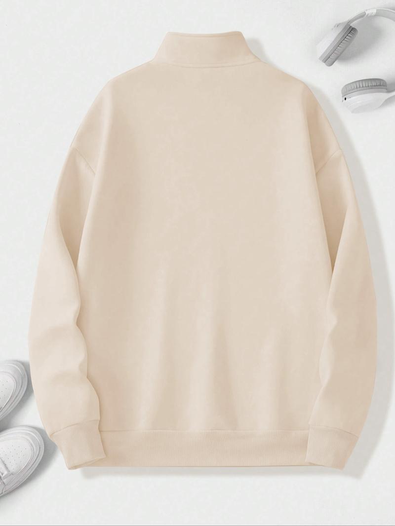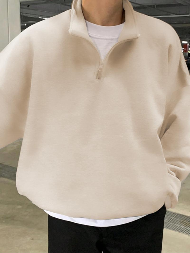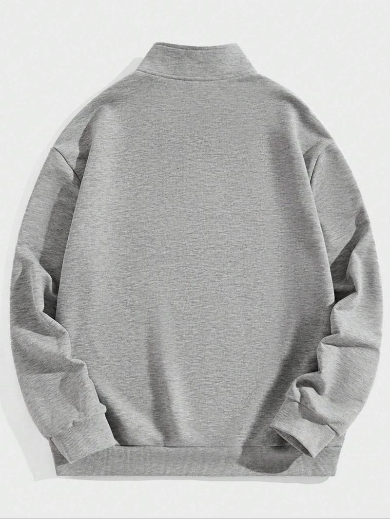 Men's Solid Drop Shoulder Half Zip Up Thermal Lined Lounge Sweatshirt, Regular Fit Casual Long Sleeve Funnel Neck Pullover for Spring & Fall, Men's Loungewear for Daily Wear