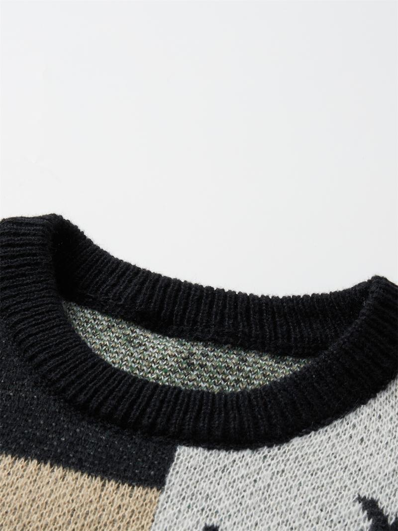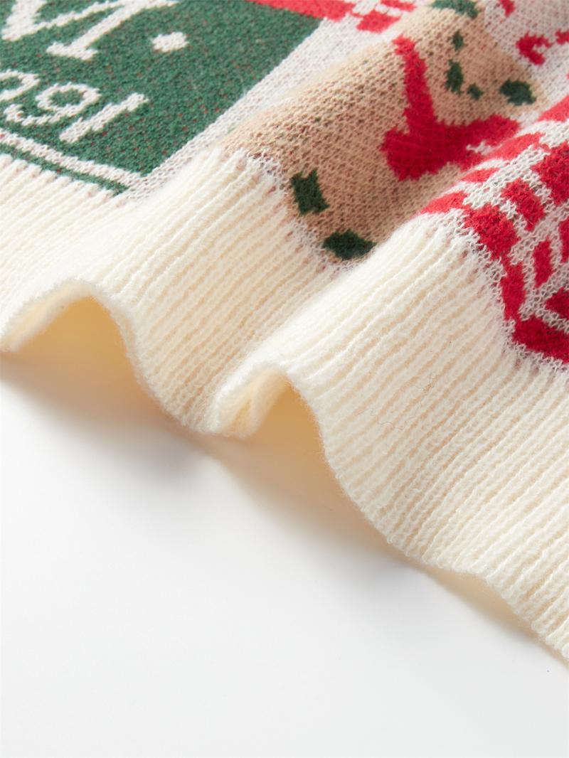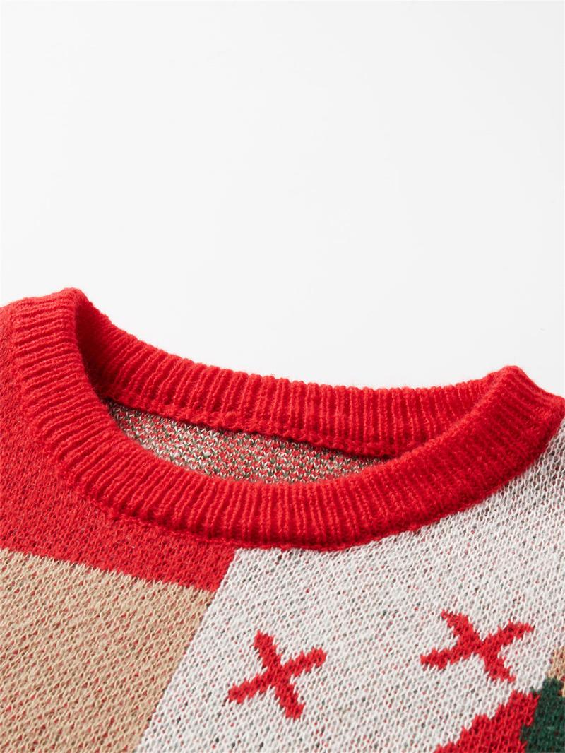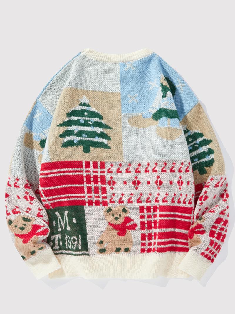 Men's Christmas Tree & Bear Print Drop Shoulder Sweater Pullover, Casual Regular Fit Long Sleeve Round Neck Jumper for Fall & Winter, Fashion Men's Knitwear for Daily Wear