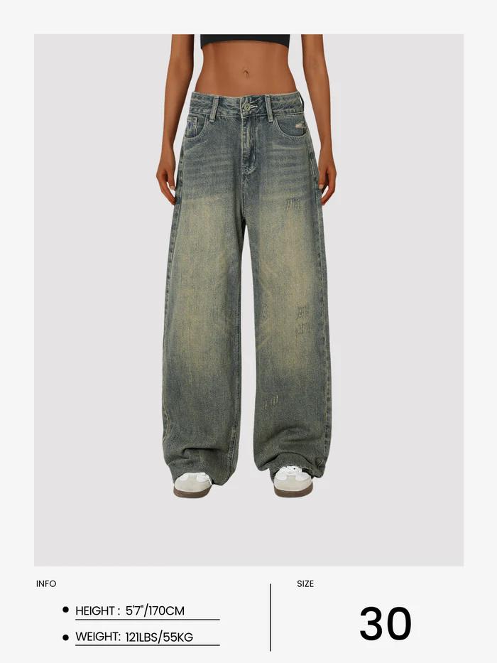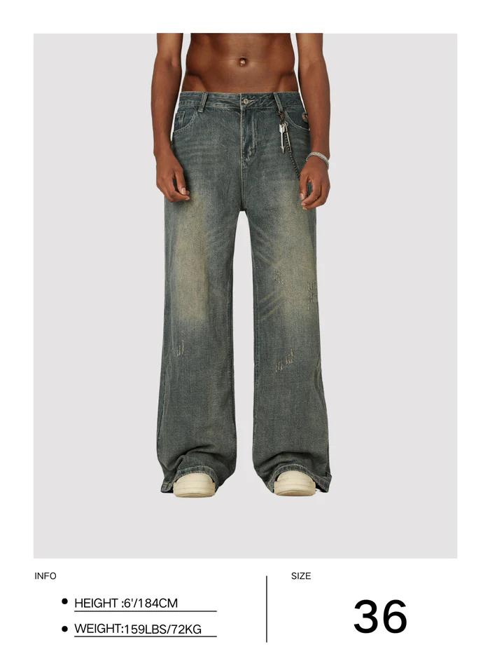 Design: Foot mouth distressed, wide legs, multi-pockets, baggy fit, stacked fit.