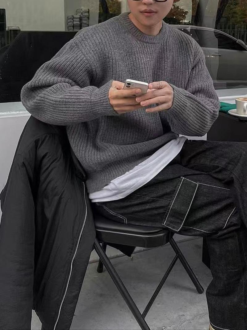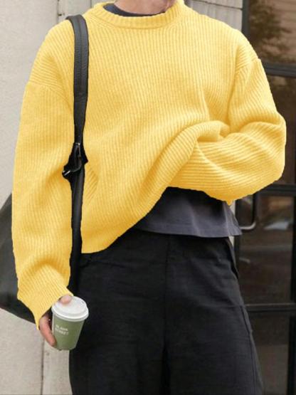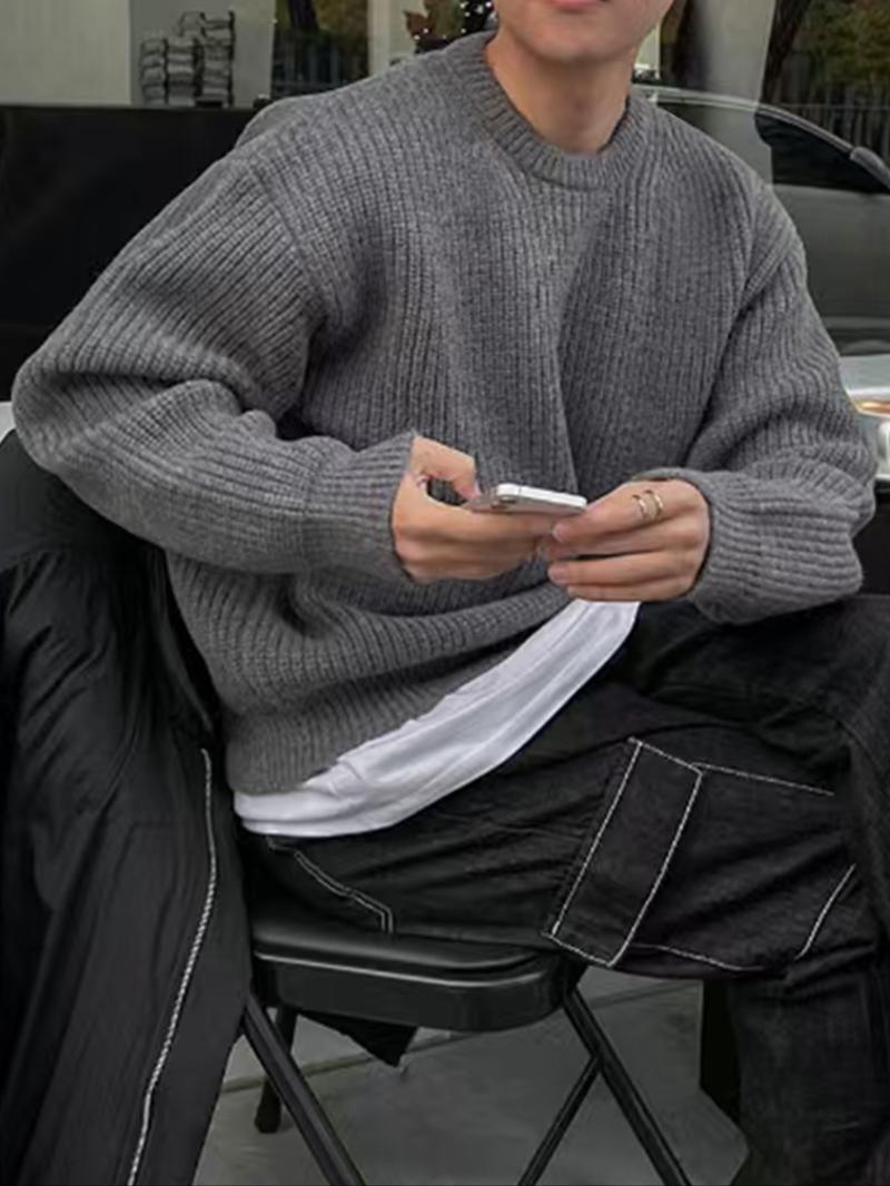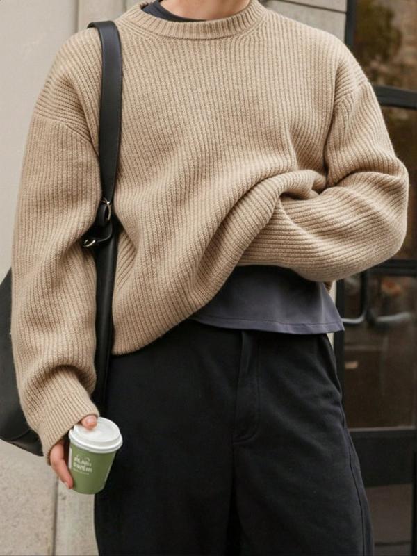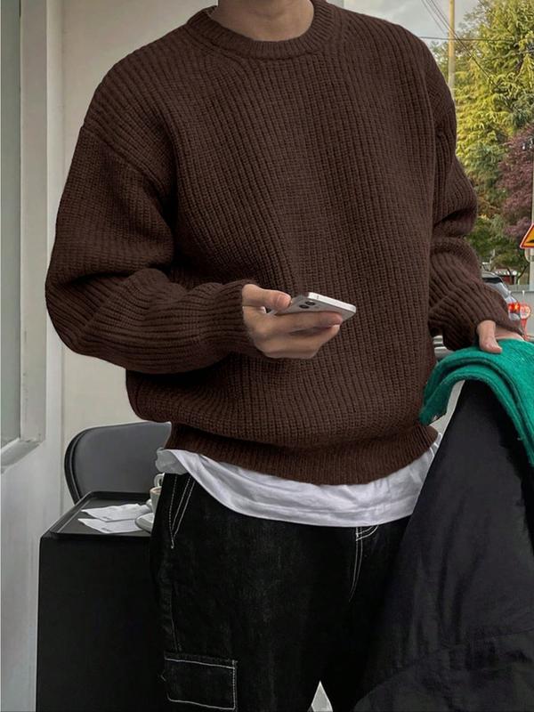 Men's Solid Drop Shoulder Cable Knit Sweater, Loose Casual Long Sleeve Round Neck Jumper for Fall & Winter, Fashion Men's Knitwear for Daily Wear