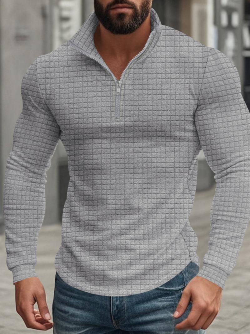 Men's Regular Fit Plain Half Zip Up Sweatshirt, Casual Long Sleeve Pullover for Spring & Fall, Fashion Men's Clothes for Daily Wear