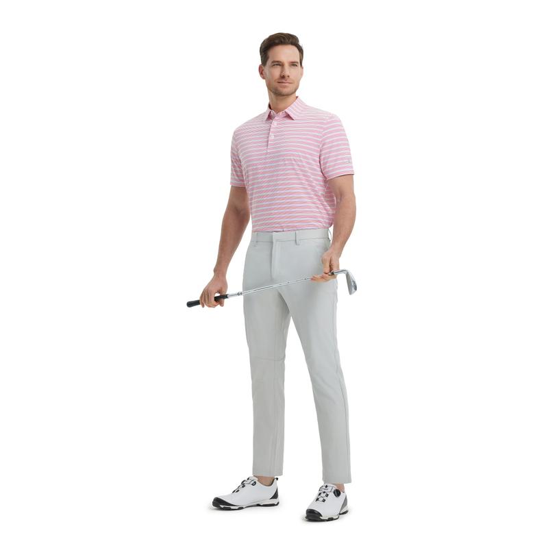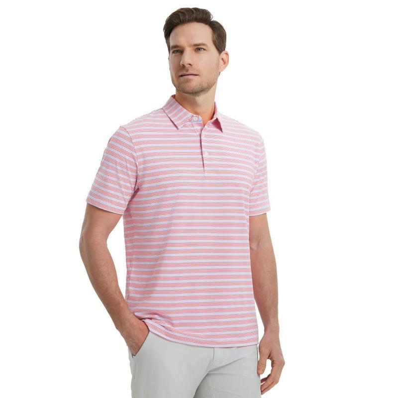 M MAELREG Mens Golf Shirts Dry Fit Moisture Wicking Performance Sports Short Sleeve Striped Collared Polo Shirts for Men Fashion Menswear Casual Top