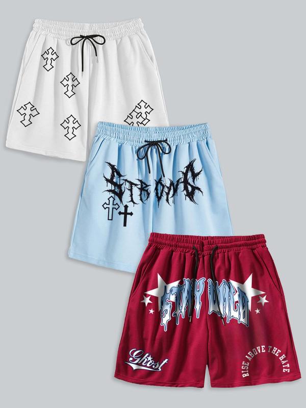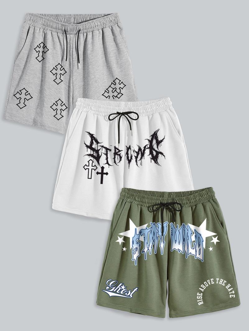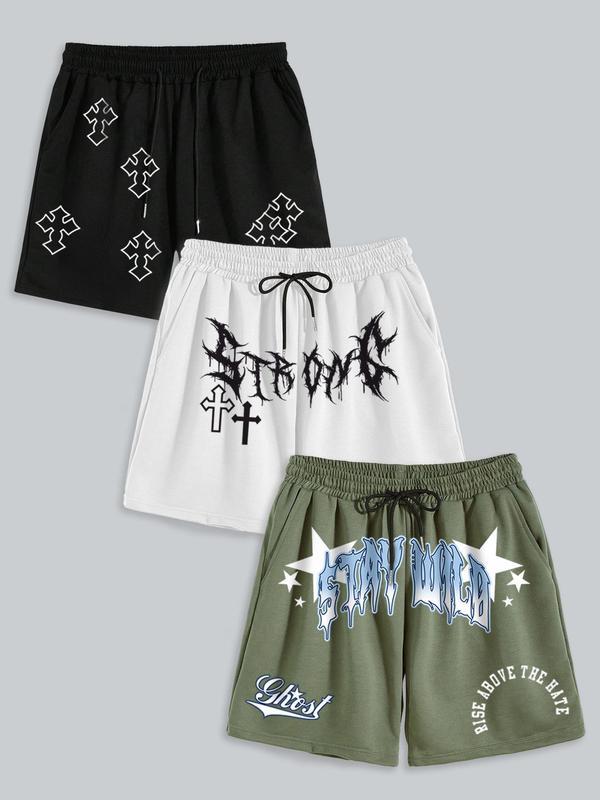 Men's Letter Print Slogan Shorts, Casual Comfy Breathable Shorts for Summer, Men's Bottoms for Daily Wear