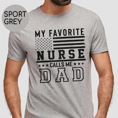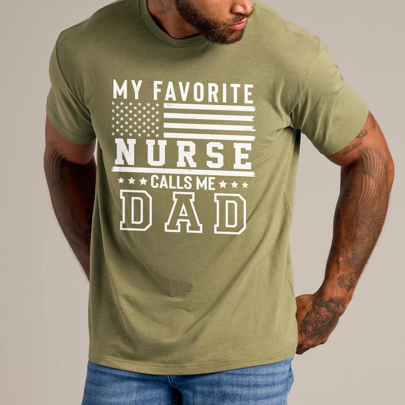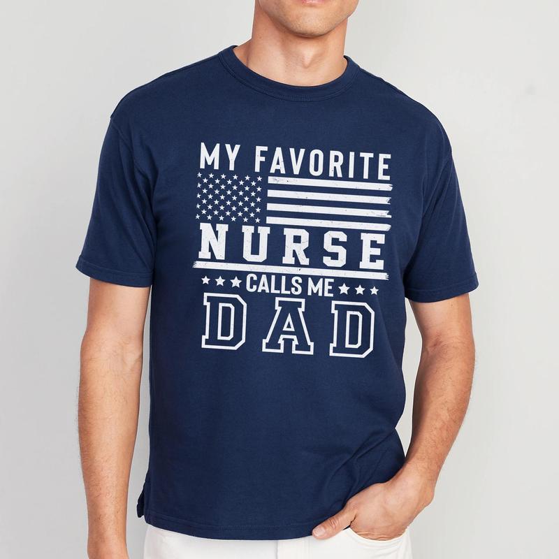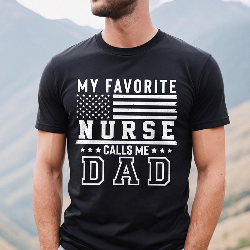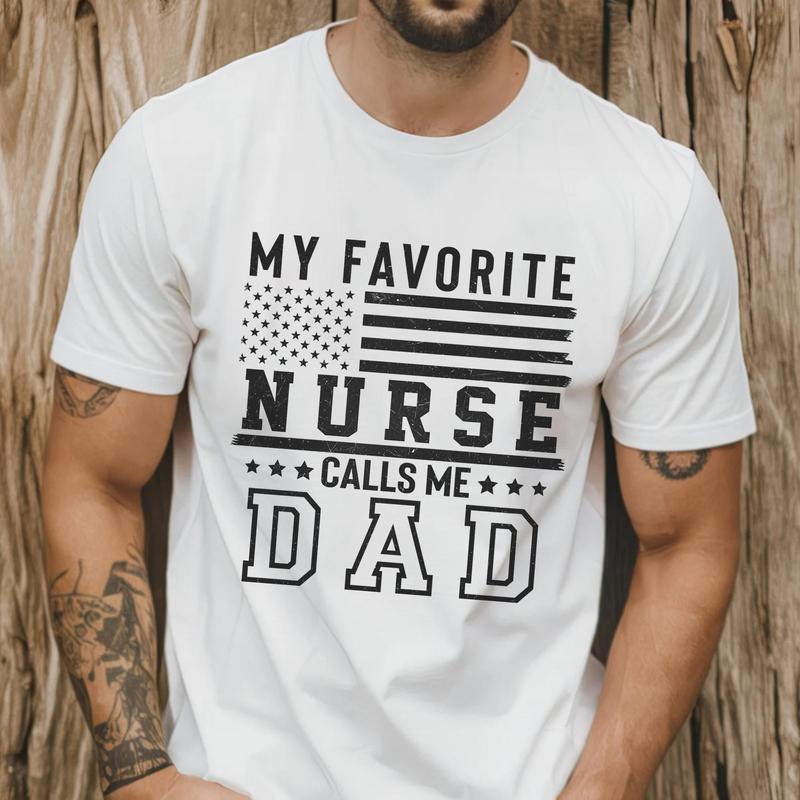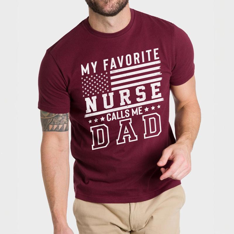 Celebrate being a Dad with this fun "My Favorite Nurse Calls Me Dad" shirt! Featuring a bold design with the American flag and a playful twist on being both a nurse and a proud dad, this shirt is perfect for Father’s Day, birthdays, or just showing off your love for both your family and your career.