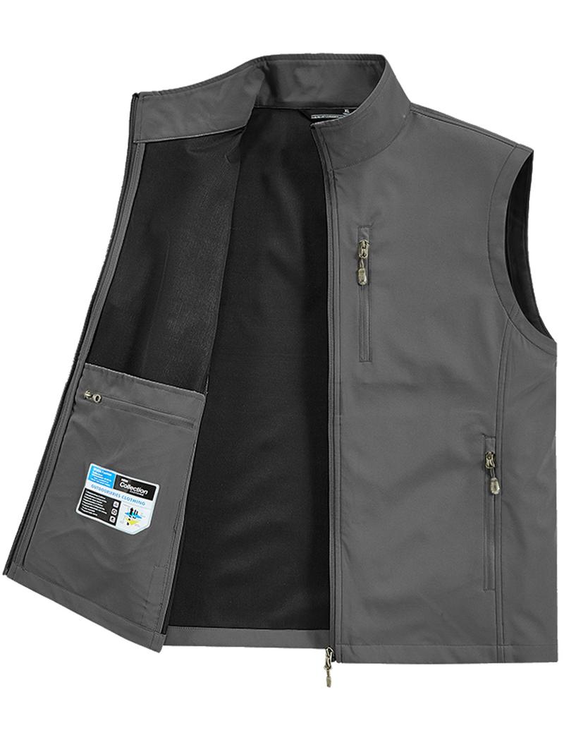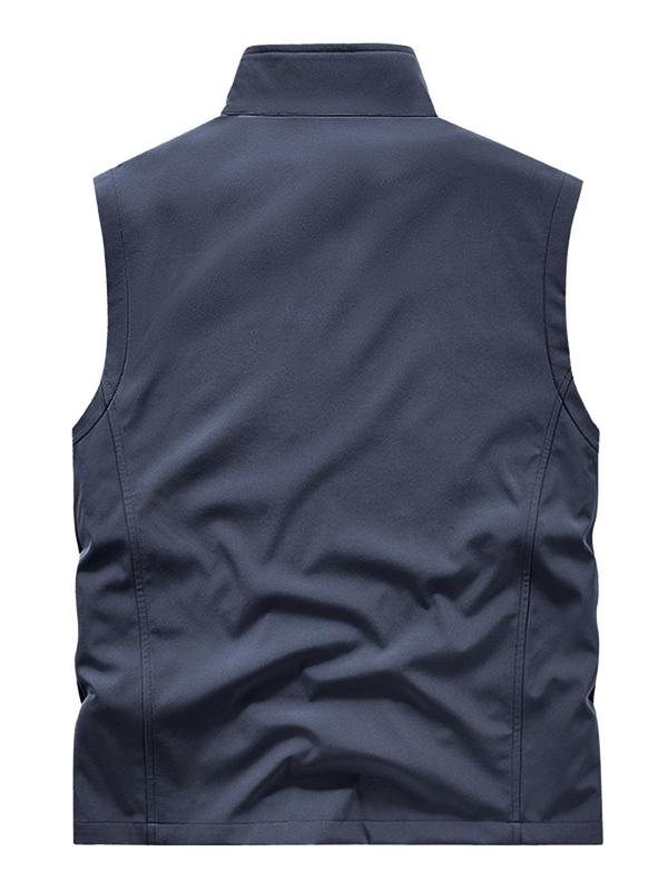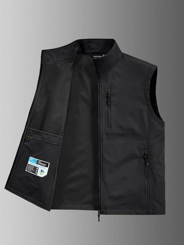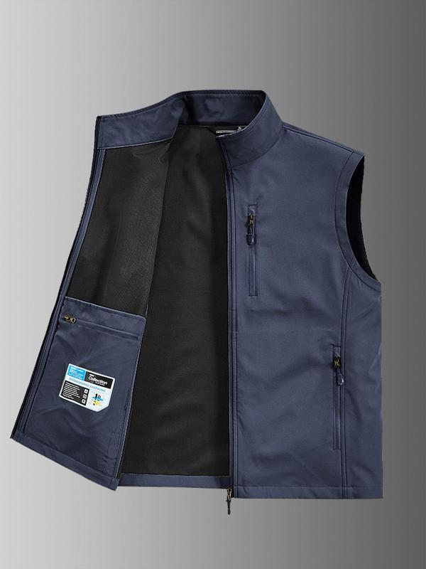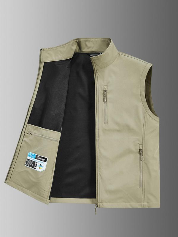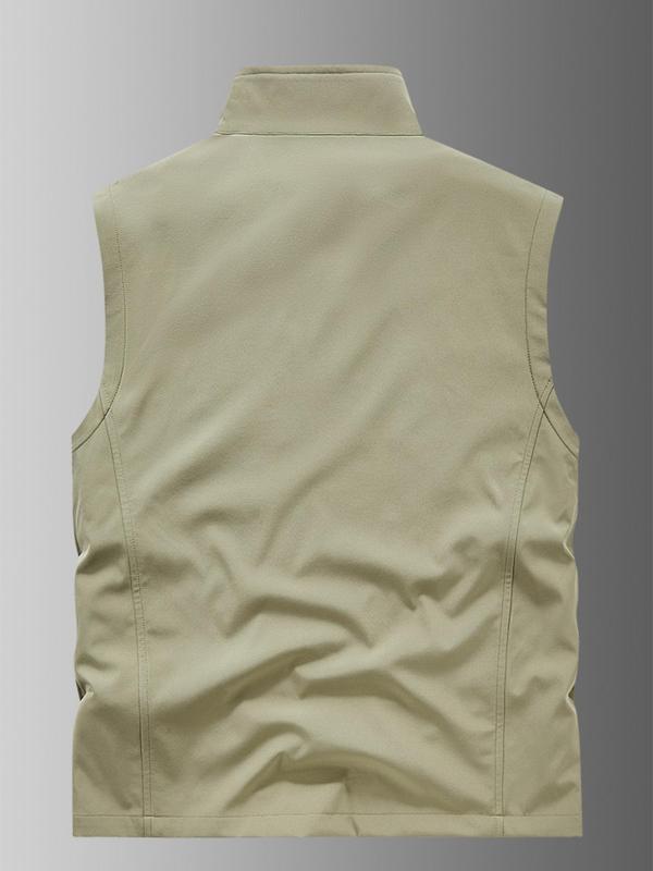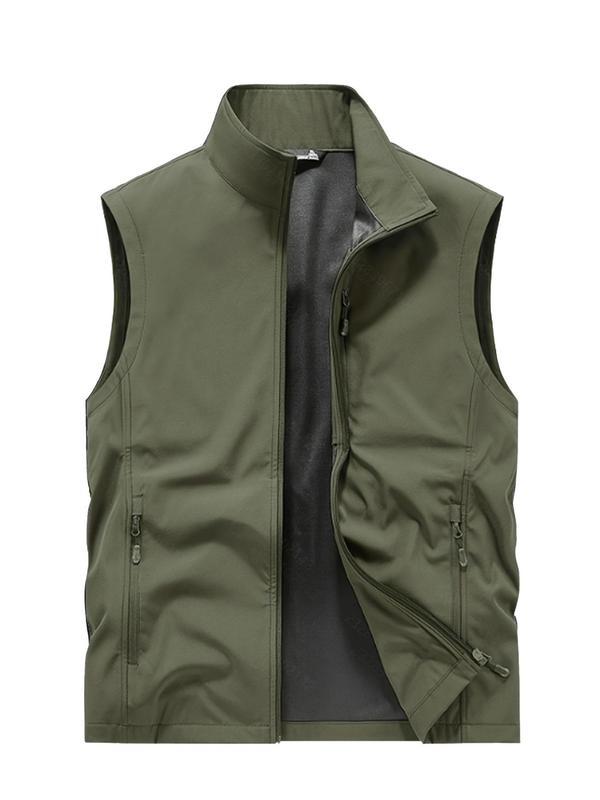 Men's Solid Pocket Zip Up Vest Jacket, Sleeveless Gilet, Regular Fit Casual Lightweight Sleeveless Outerwear for Golf Running Hiking, Men's Clothes for Summer, Menswear