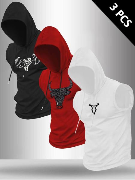 Men's Bull Head Print Hooded Tank Top, Regular Fit Casual Comfy Sleeveless Top for Summer, Men's Clothes for Outdoor Workout, Menswear