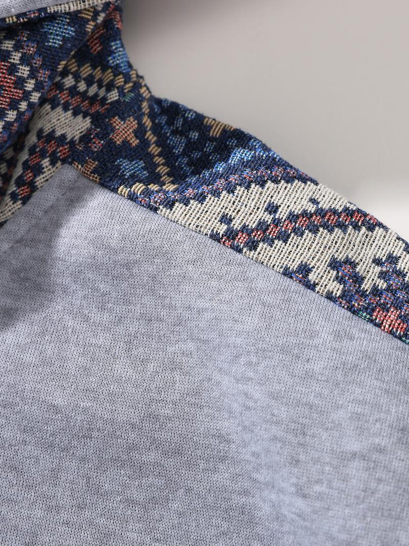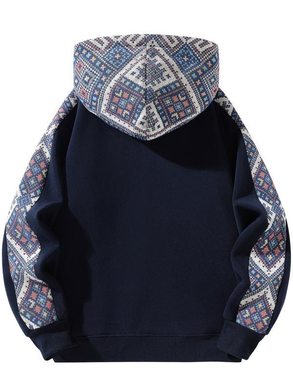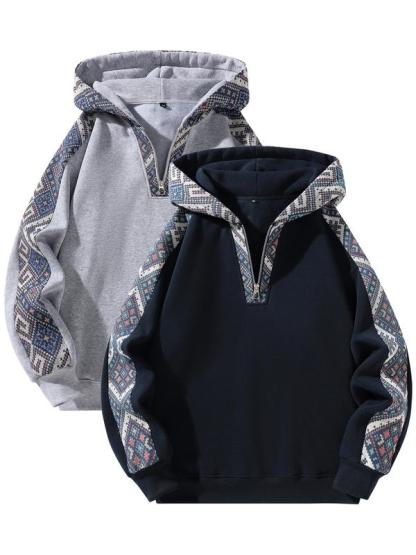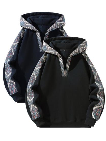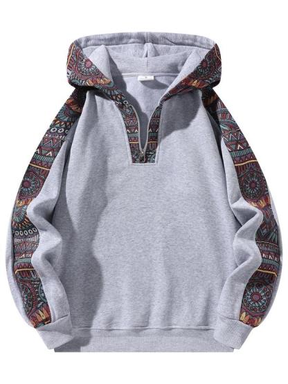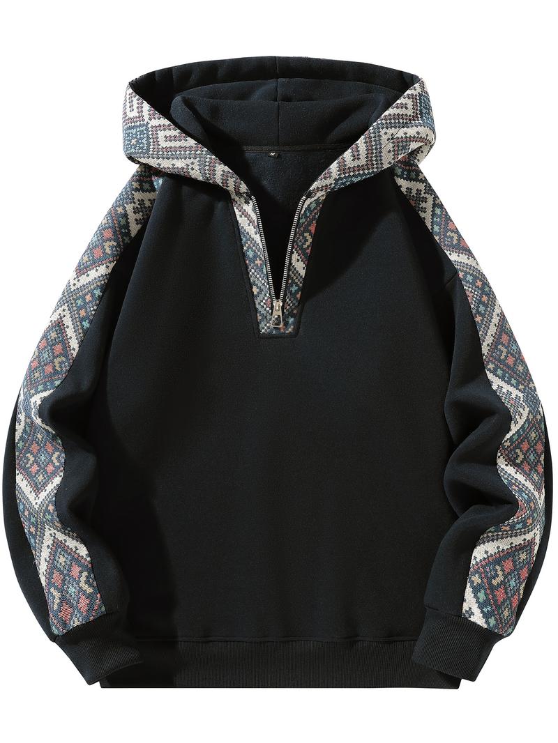 Unisex's Retro Ethnic Patchwork Half Zip Hoodie, Casual Comfy Regular Fit Long Sleeve Hooded Sweatshirt for Fall & Winter, Men's Top for Daily Wear, Graphic Print Hoodie