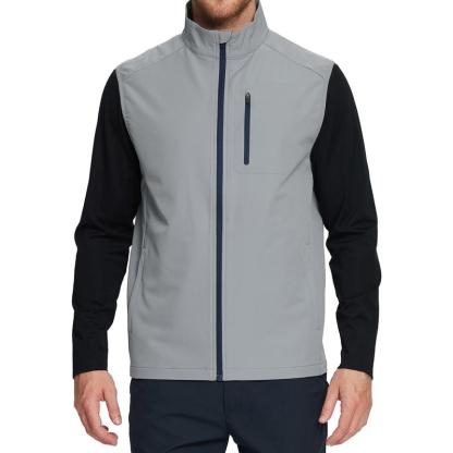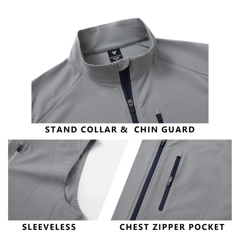 STYLISH DESIGN & POCKETS: This men's outerwear golf vests features the mock neck, contrast wind guard and chin guard, all combining fashion with function.Also it includes two zip hand pockets, two internal pockets and one zippered chest pocket.