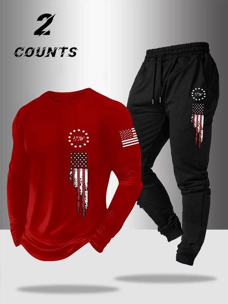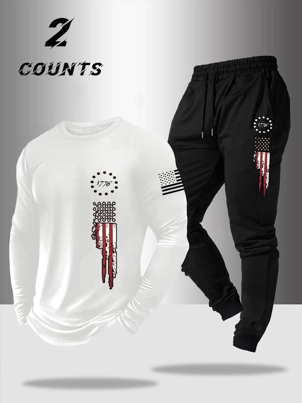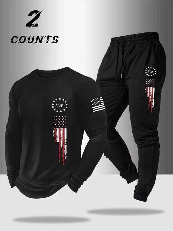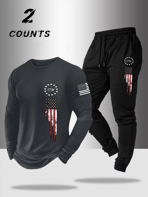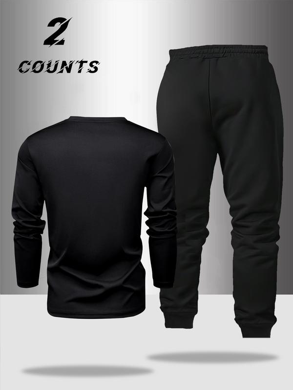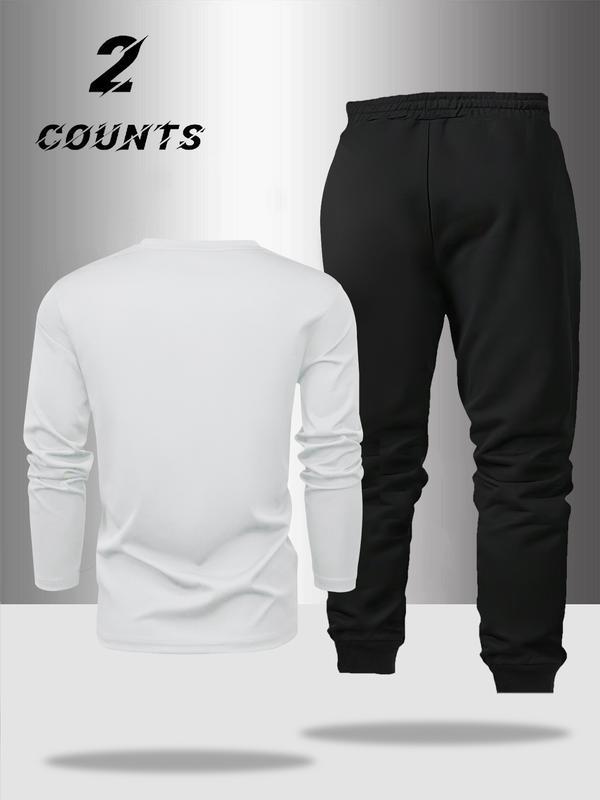 Men's Casual Long Sleeve Tee and Pants Set, Star Pattern Print Round Neck Shirt Plus Drawstring Pocketed Trousers, Stylish Spring & Fall
