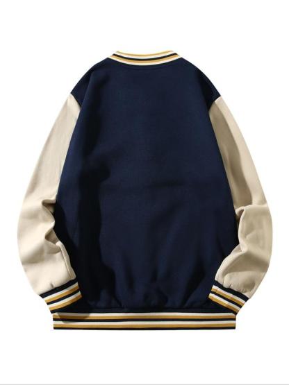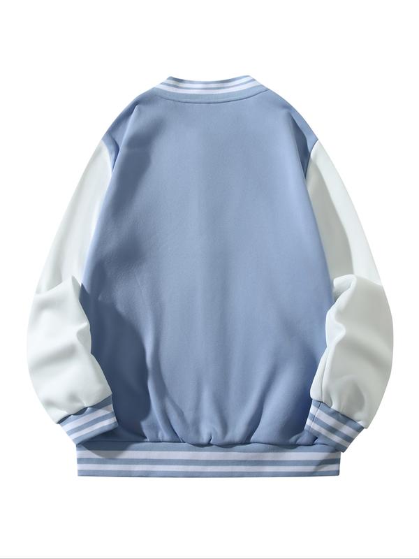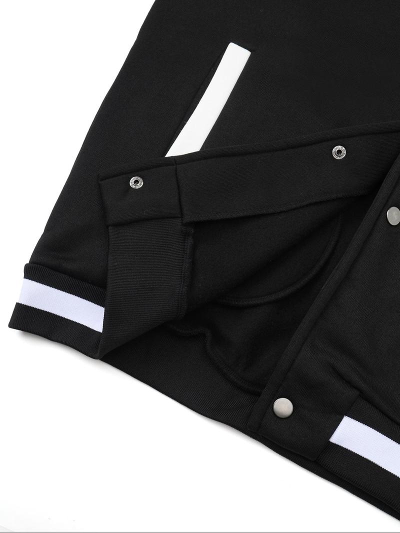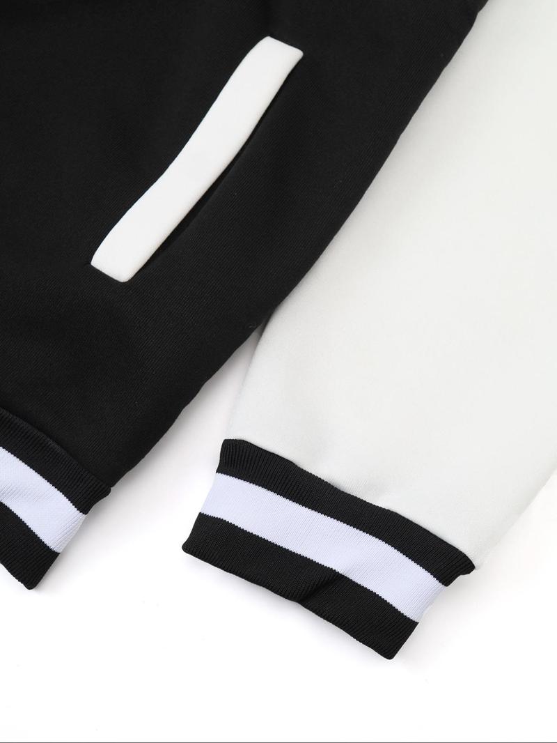 【Contrasting Sleeves】: The black and white sleeve color blocking creates a stark visual contrast, highlighting a trendy urban aesthetic.