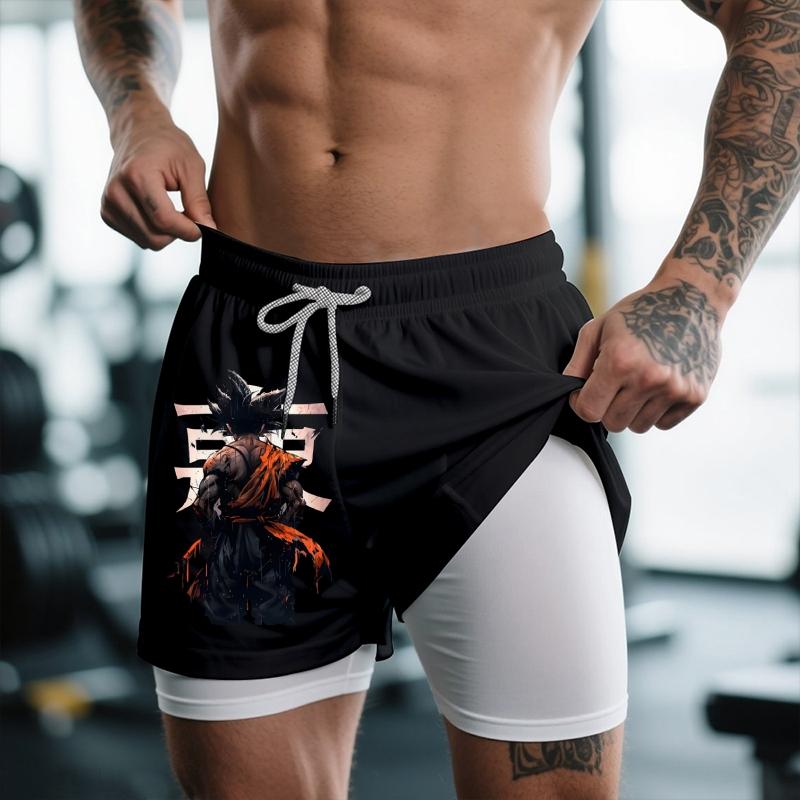 Dragon Ball DBZ Goku 80s 90s summer men shorts for men jorts outfit men graphic shorts Double-layer sports shorts Comfortable short shorts summer