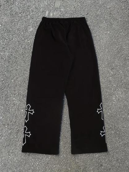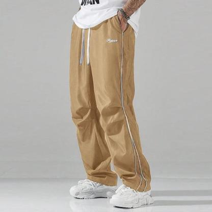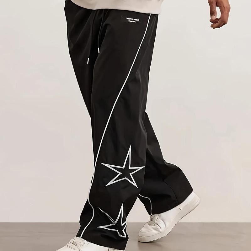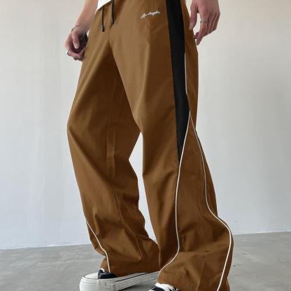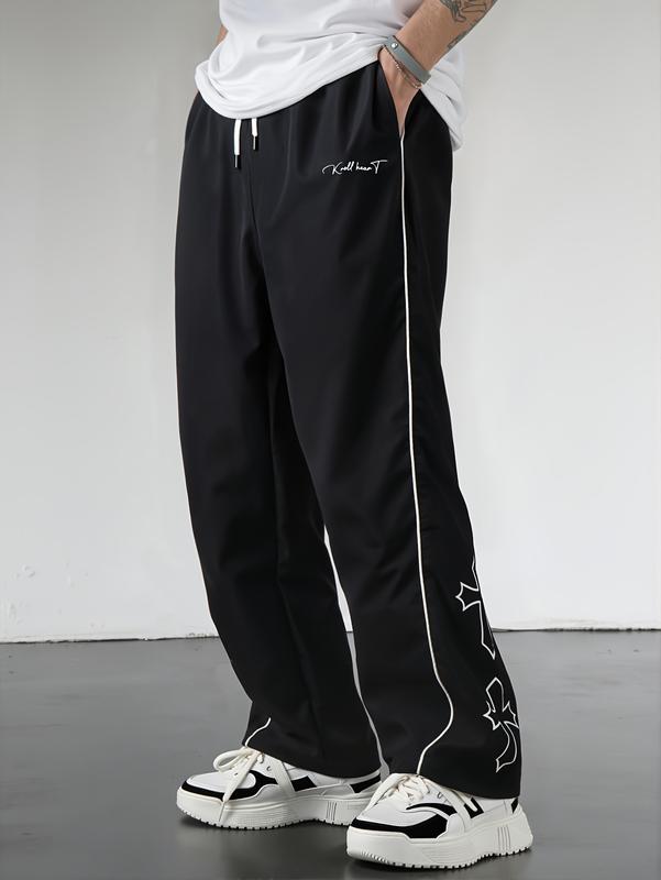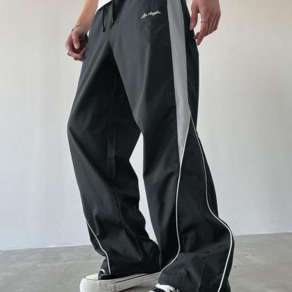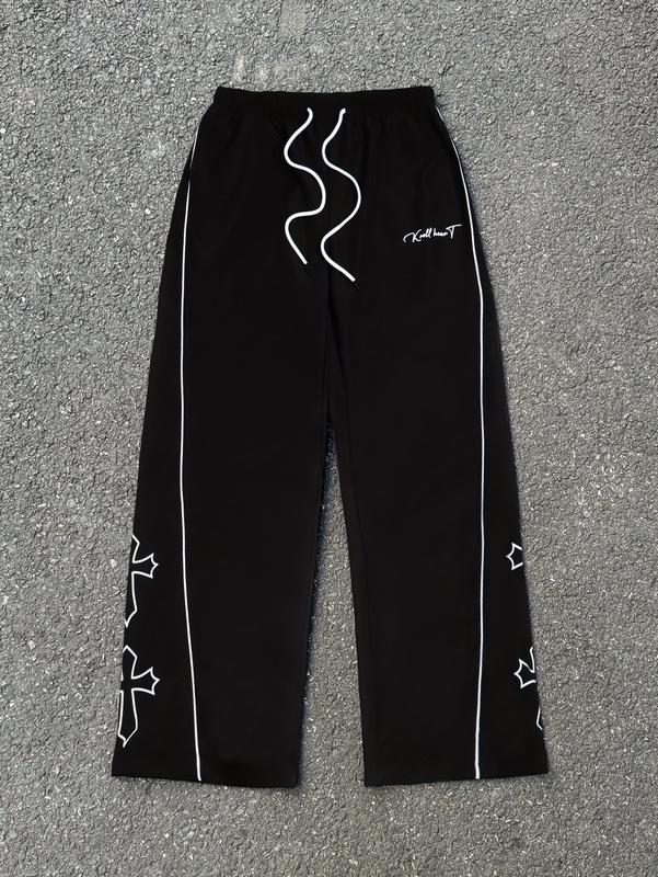 Gamis Bestie Men's Black Athletic Pants with White Side Stripes & Embroidery Design Casual Gym Wear Sweatpants Tracksuit Sports Bottoms Athleisure Style Tracksuit Outfit Sweatpants Set Drawstring Straight Leg Workout Clothes