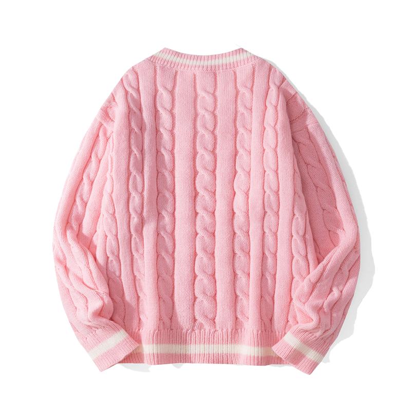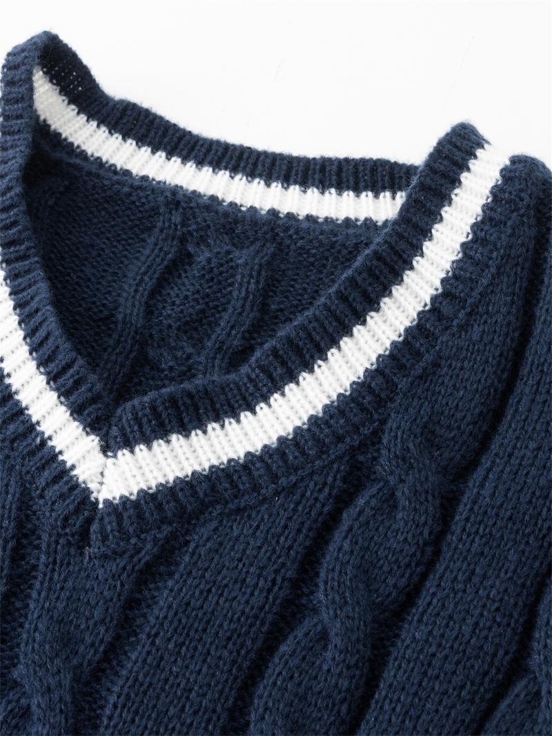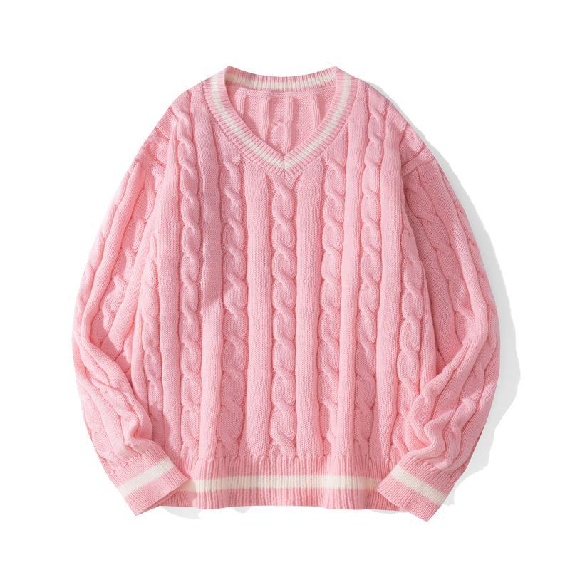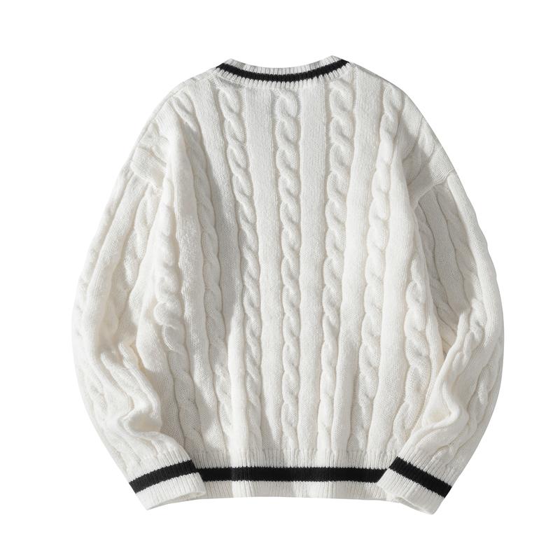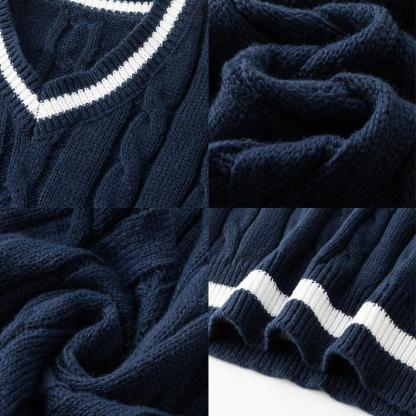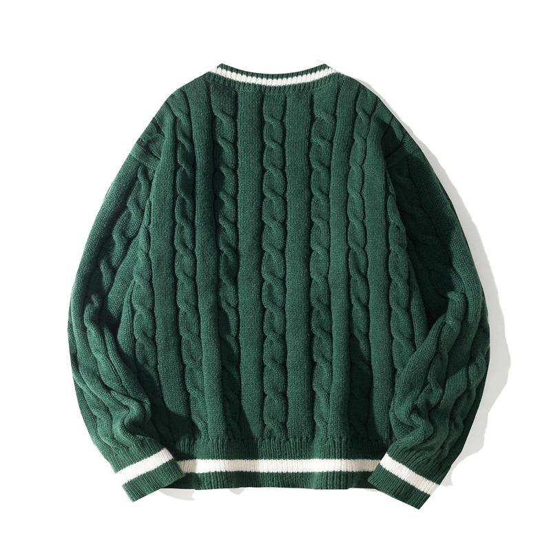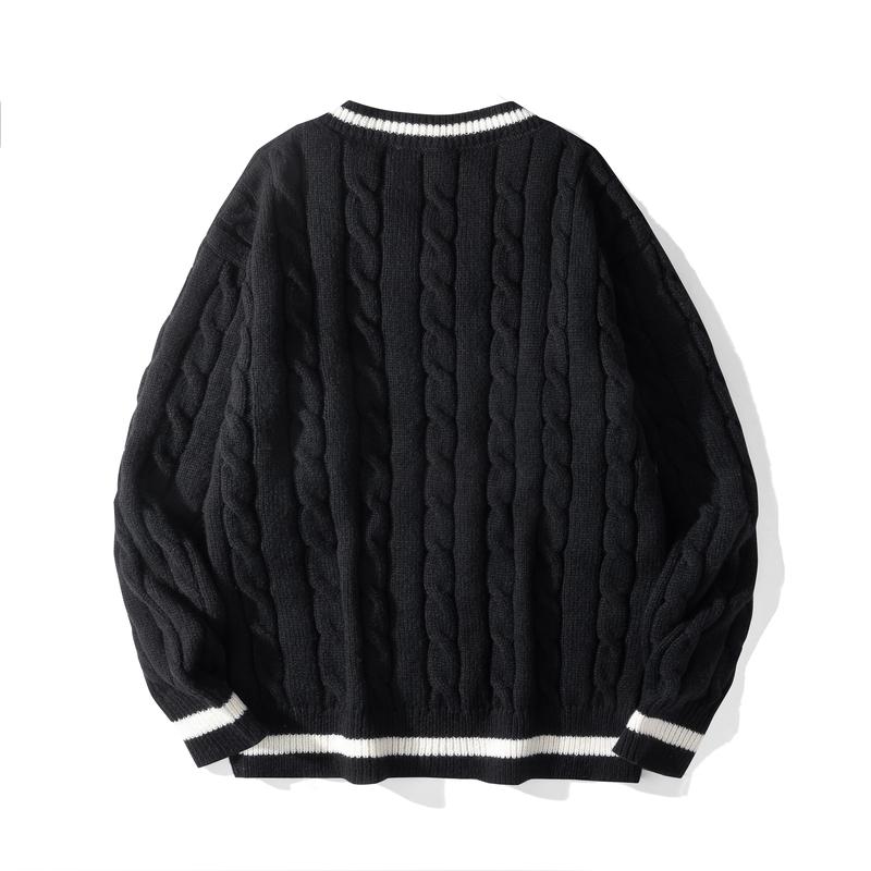 Men's thick and warm knitted sweater in autumn and winter style, casual and fashionable, loose and easy to match with polyester material, V neck striped top, street wear, oversized knitted men's shirt, fashionable fabric, college style, unisex