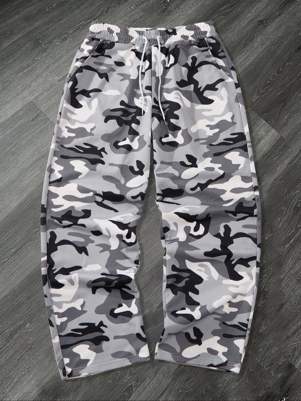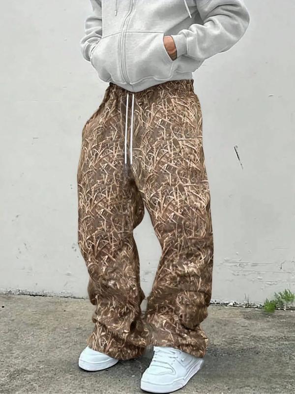 Men's Casual Camo Long Pants, Loose-Fit Drawstring Wide Leg Joggers, All-Season Comfortable Fabric, Perfect for Everyday Wear, Casual Street Pants