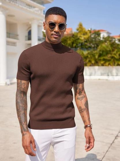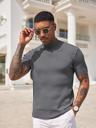 【Fashion Design】This men's short-sleeved pullover shirts features with unique half turtleneck design, knitted fabric, ribbed hem, regular fit, solid color, the perfect blend of classic and trendy elements.It is versatile, comfortable, and stylish, making it a great addition to any wardrobe.