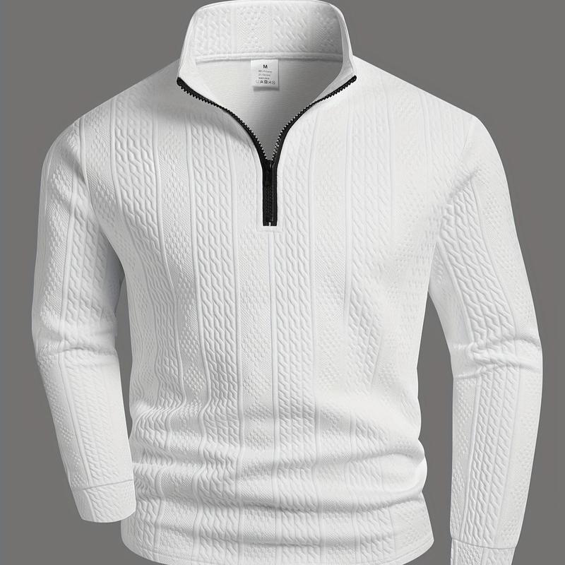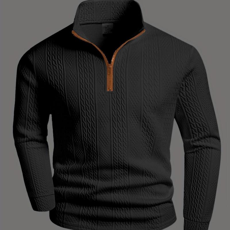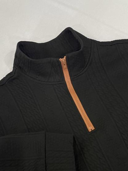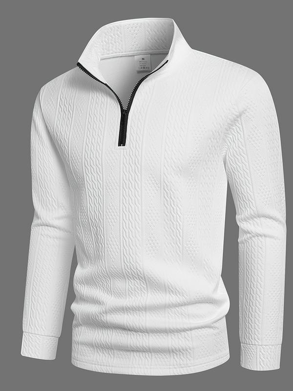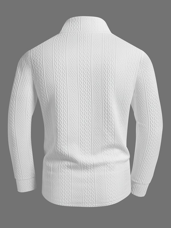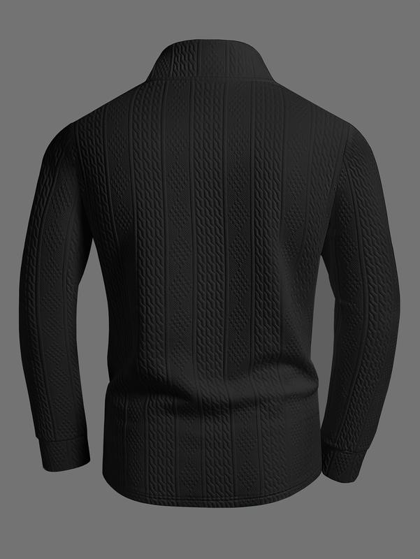 Texture new fabric jacquard pattern men's long sleeved polo shirt thick top zipper stand collar daily casual wear business casual wear